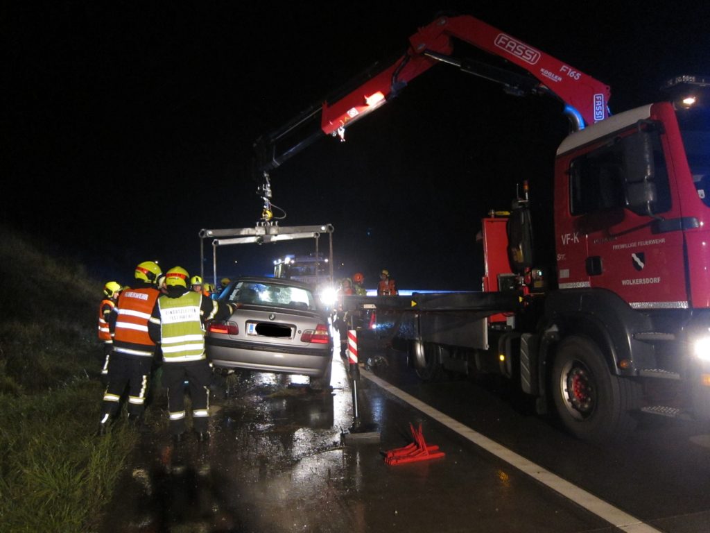 Nach einem Verkehrsunfall stand ein Fahrzeug auf dem Pannenstreifen, jedoch entgegen der Fahrtrichtung. Wir sicherten die Unfallstelle ab und halfen anschließend der FF Wolkersdorf beim Verladen des schwer beschädigten PKWs (an dieser Stelle ein herzliches Dankeschön für die reibungslose Zusammenarbeit).