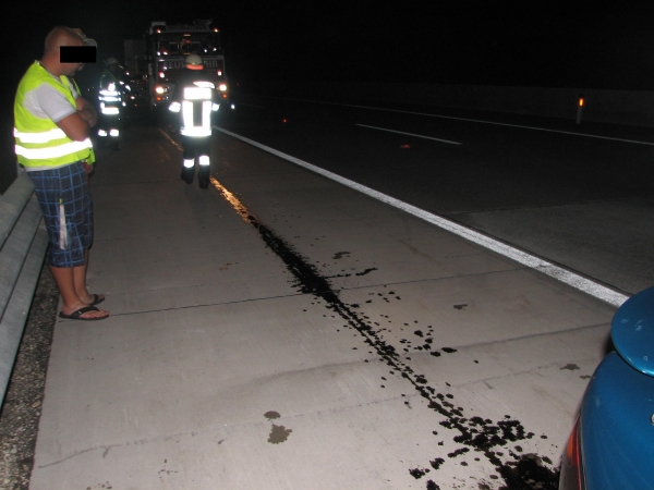 Nach einem Motorschaden verlor ein PKW Betriebsflüssigkeit und kam am Pannenstreifen zum Stehen. Da der Fahrer Brandgeruch wahrgenommen hatte, zögerte dieser nicht und rief die Feuerwehr. Nach unserem Eintreffen wurde die Unfallstelle abgesichert und das Fahrzeug weg von der Autobahn sicher abgestellt. © Feuerwehr Hochleithen
