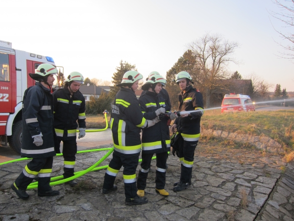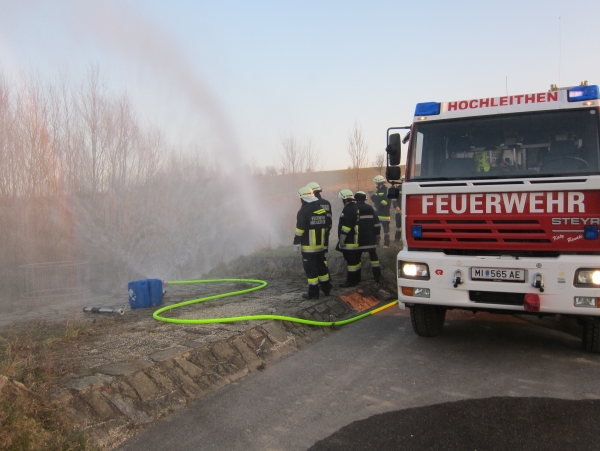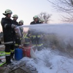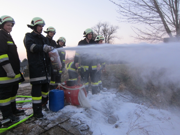 Gestartet wurde mit dem Aufbau einer Löschleitung, wo der richtige Umgang mit verschiedenen Strahlrohren geübt wurde. Der zweite große Teil der Ausbildung bestand darin, den Umgang mit Schaum zu erlernen.