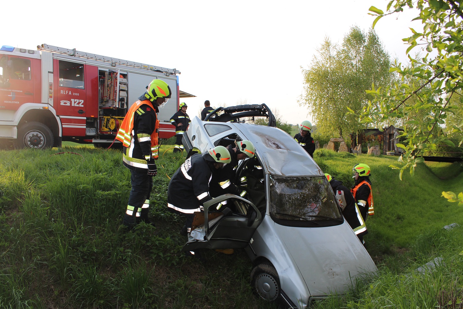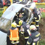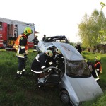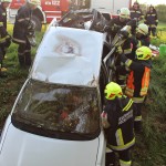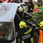 Der erste Teil bestand aus einem technischen Einsatz mit der Alarmierung – Verkehrsunfall mit vermutlich mehreren eingeklemmten Personen. Die verletzten Personen wurden von unseren Jungkameraden rasch aus dem Fahrzeug gerettet und anschließend der Rettung übergeben.