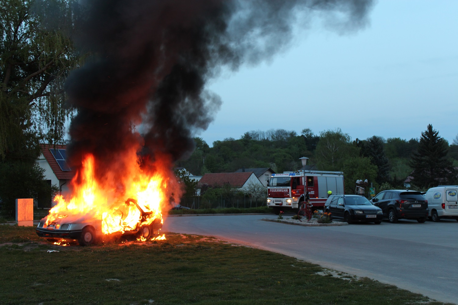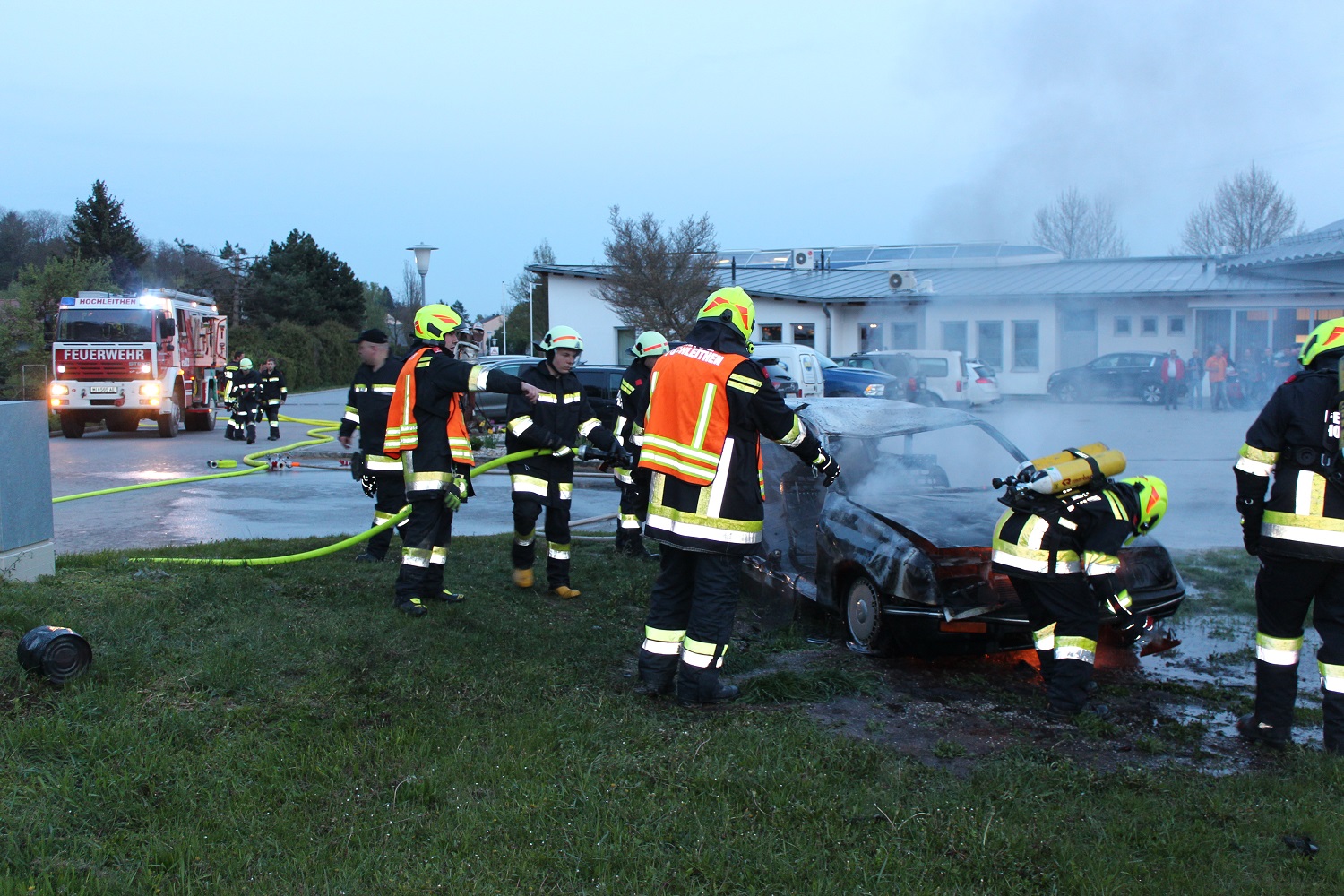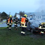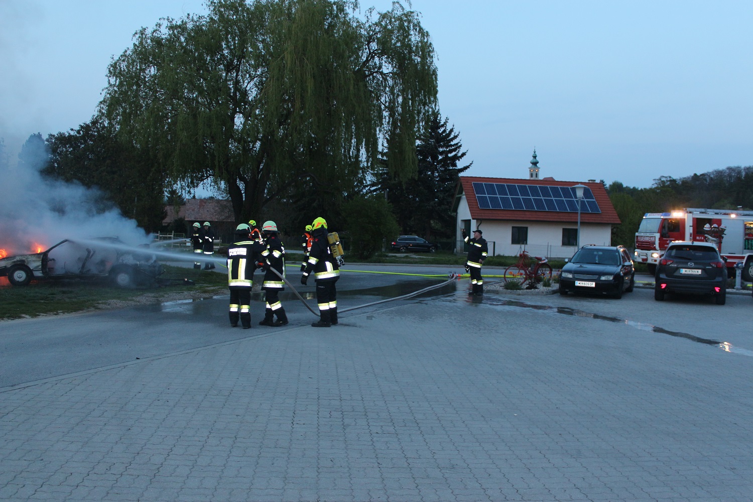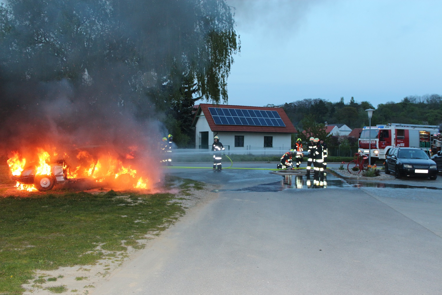 ALs das RLF, besetzt mit den Kameraden, soeben noch beim Tank Füllen in Bogenneusiedl war, wurde bereits zum nächsten (und letzten) Einsatz gerufen. Diesmal lautete der Alarmtext – Fahrzeugbrand hinter dem Feuerwehrhaus. Hierbei konnten die Probefeuerwehrmänner beweisen, wie professionell sie unter Zeitdruck arbeiteten und absolvierten diesen Teil ebenso mit Bravour und beinahe ausschließlich selbstständig, was äußerst positiv zu bewerten ist.