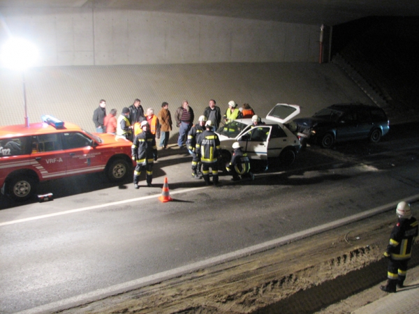 Am frühen Abend ereignete sich unter der Brücke in Richtung Gaweinstal  ein Verkehrsunfall. Ein LKW touchierte einen aus Richtung Gaweinstal kommenden PKW. Durch den plötzlichen Stillstand des beschädigten Fahrzeuges kollidierten noch 2 PKW mit dem Unfallfahrzeug.