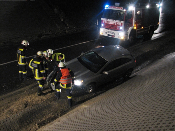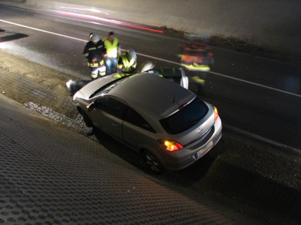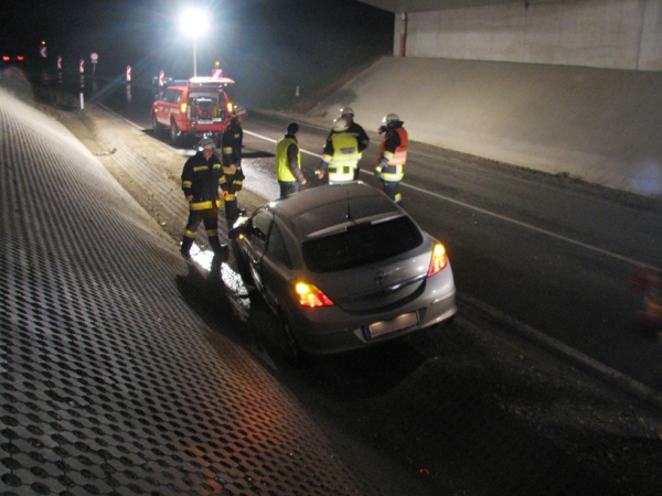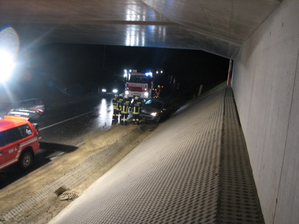 Ein  aus Richtung Gaweinstal kommender PKW verlor in der Kurve unter der Brücke die Kontrolle über sein Fahrzeug. Das Fahrzeug drehte sich um 180° und kam im Graben zum Stillstand. Durch die große Wucht des Aufpralls, nahm die Vorderachse einen Schaden. Nach der Absicherung der Unfallstelle, wurde das Unfallfahrzeug aus dem Graben geborgen und nach Wolkersdorf sichergestellt.