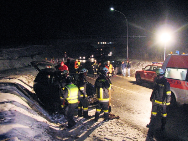 Zusammenstoß von zwei PKW vor der neuen Unterführung Richtung Mistelbach. Die Verletzten Personen wurden mit der Rettung ins SMZ Ost transportiert. Da die B7 durch die Polizei gesperrt war, konnten wir die beiden Fahrzeuge rasch aus den Gefahrenbereich entfernen. Nach kurzer Zeit konnte die Fahrbahn wieder freigegeben werden.