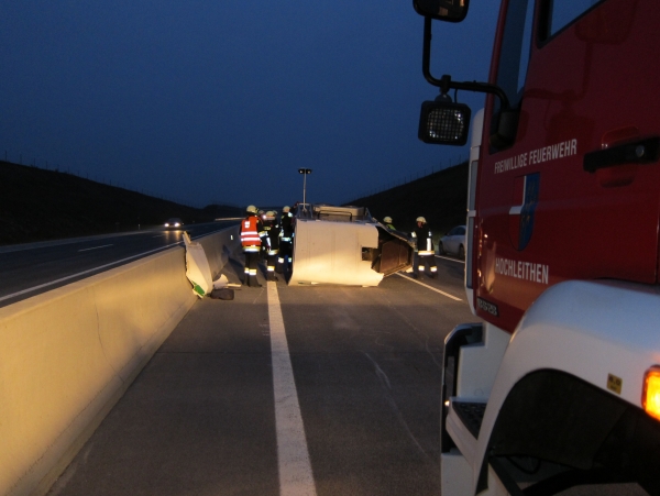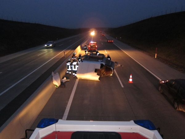 Ein Pferdeanhänger mit 2 Pferden stürzte auf der Autobahn A5, Fahrtrichtung Brünn, um. Die unverletzten Pferde wurden vom Besitzer in den Fahrbahngraben gebracht und betreut. Der Anhänger wurde rasch aufgestellt und die Fahrbahn konnte wieder freigegeben werden. Die unverletzten Pferde wurden mit einem Ersatzanhänger abtransportiert.