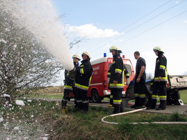 Brand und Löschlehre mit unseren Probefeuerwehrmänner | 07.04.2011 – 16:00 I