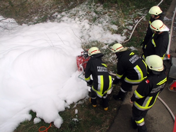 Die Kameraden übten an den Schnellangriffsvorrichtungen des Rüstlöschfahrzeuges und führten einen Schaumangriff mittels Schwer-, Mittel- und Leichtschaum durch.