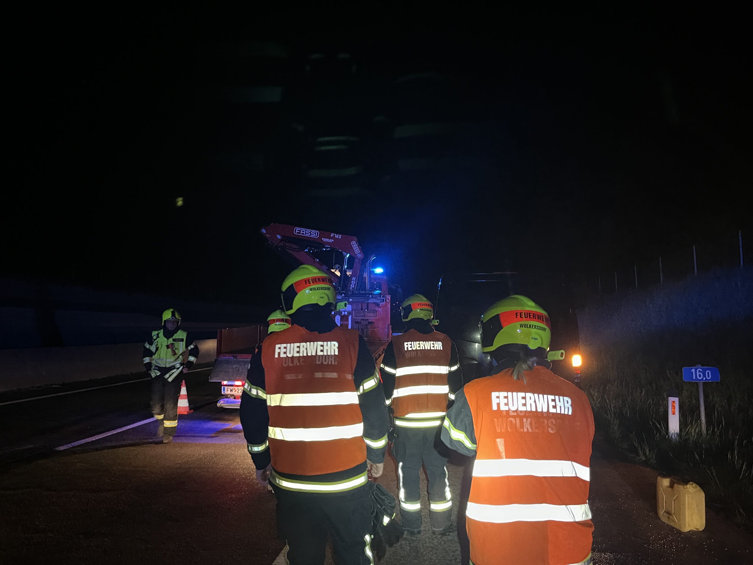 In der Nacht von Sonntag auf Montag wurden wir gemeinsam mit der FF Wolkersdorf zu einer Fahrzeugbergung auf der A5 in Fahrtrichtung Brünn alarmiert.