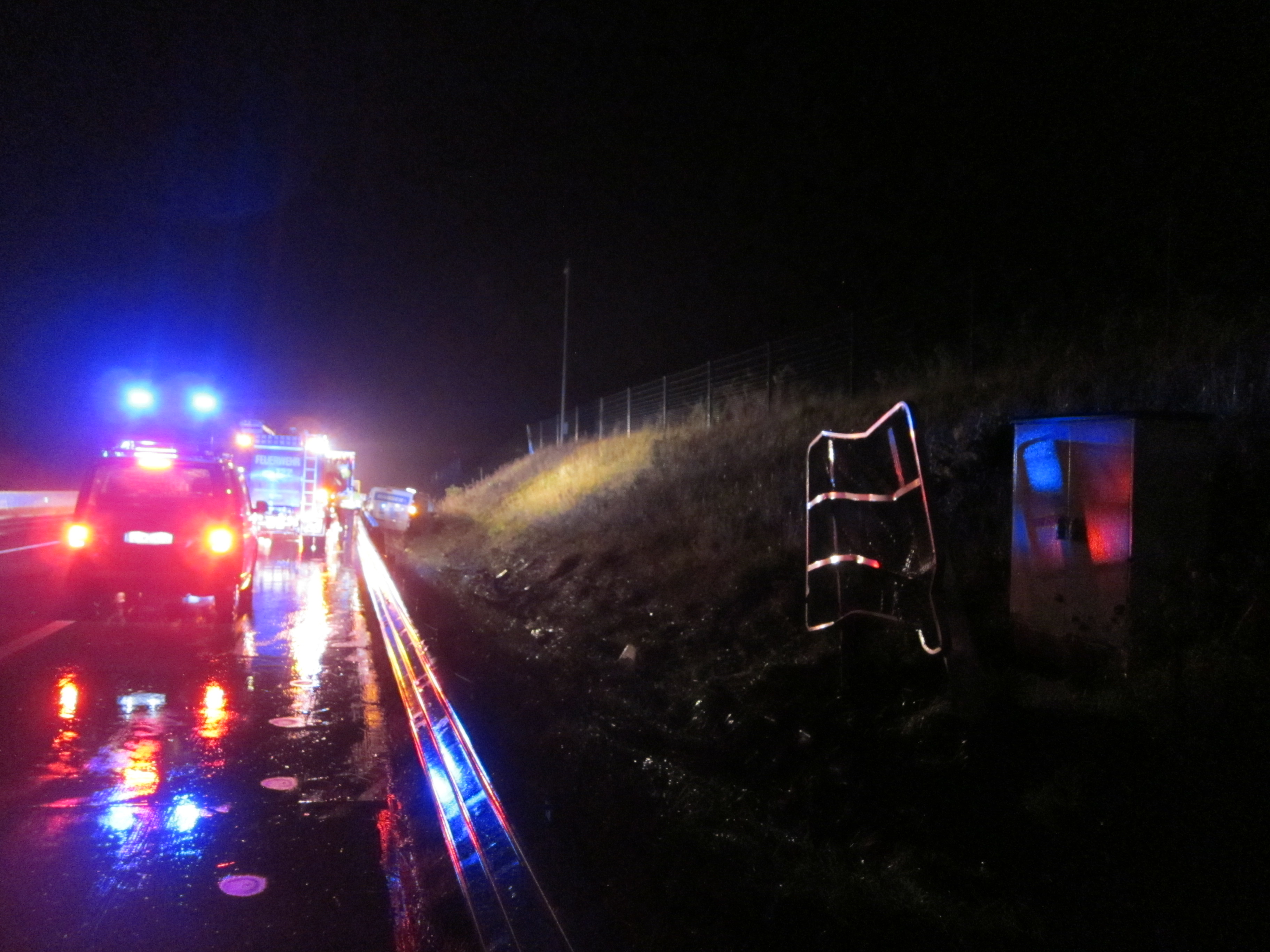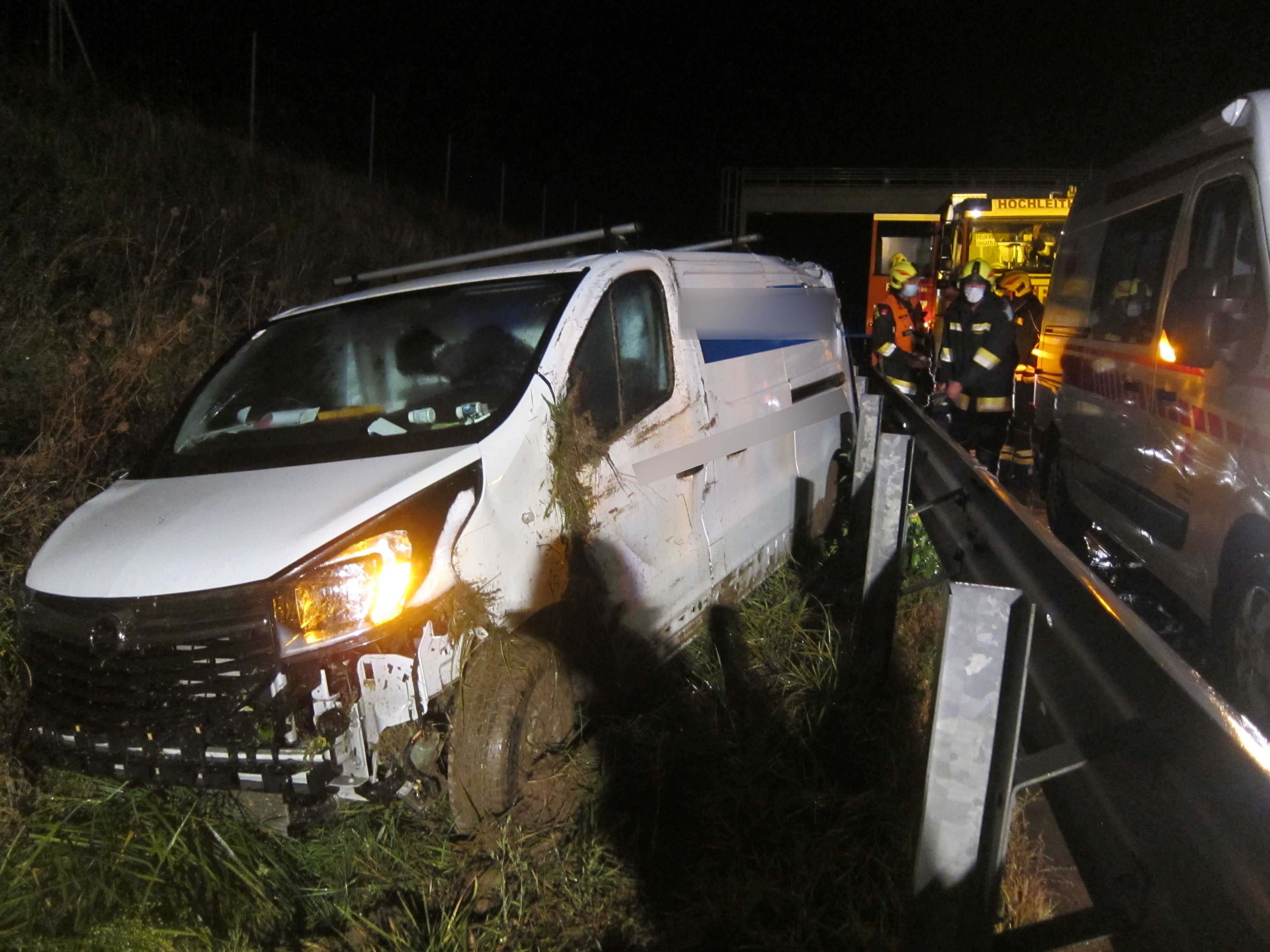 Dort kam ein verunfallter Kastenwagen zwischen Leitplanke und Böschung zum Stillstand. Die Rettung war beim Eintreffen schon vor Ort und betreute den verletzten Fahrer. Wir sicherten die Unfallstelle ab und bauten einen Brandschutz auf.