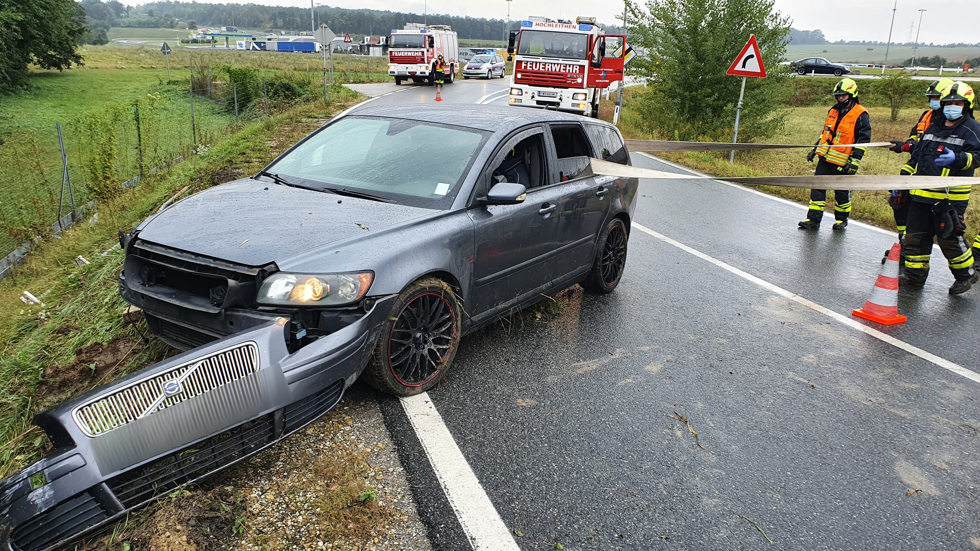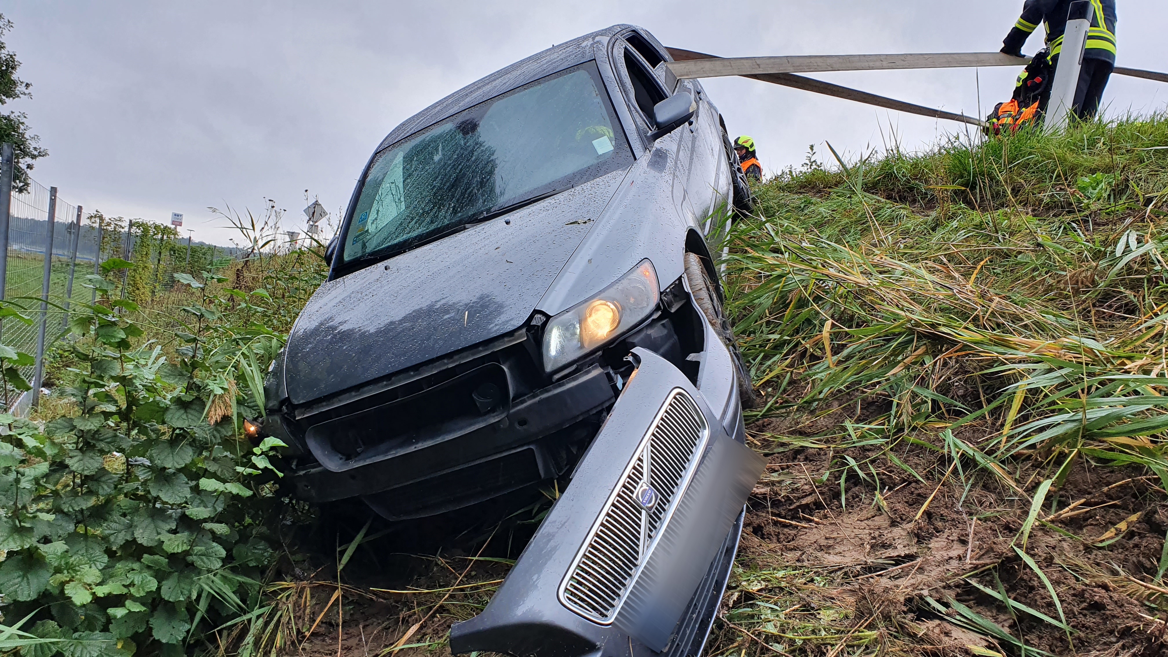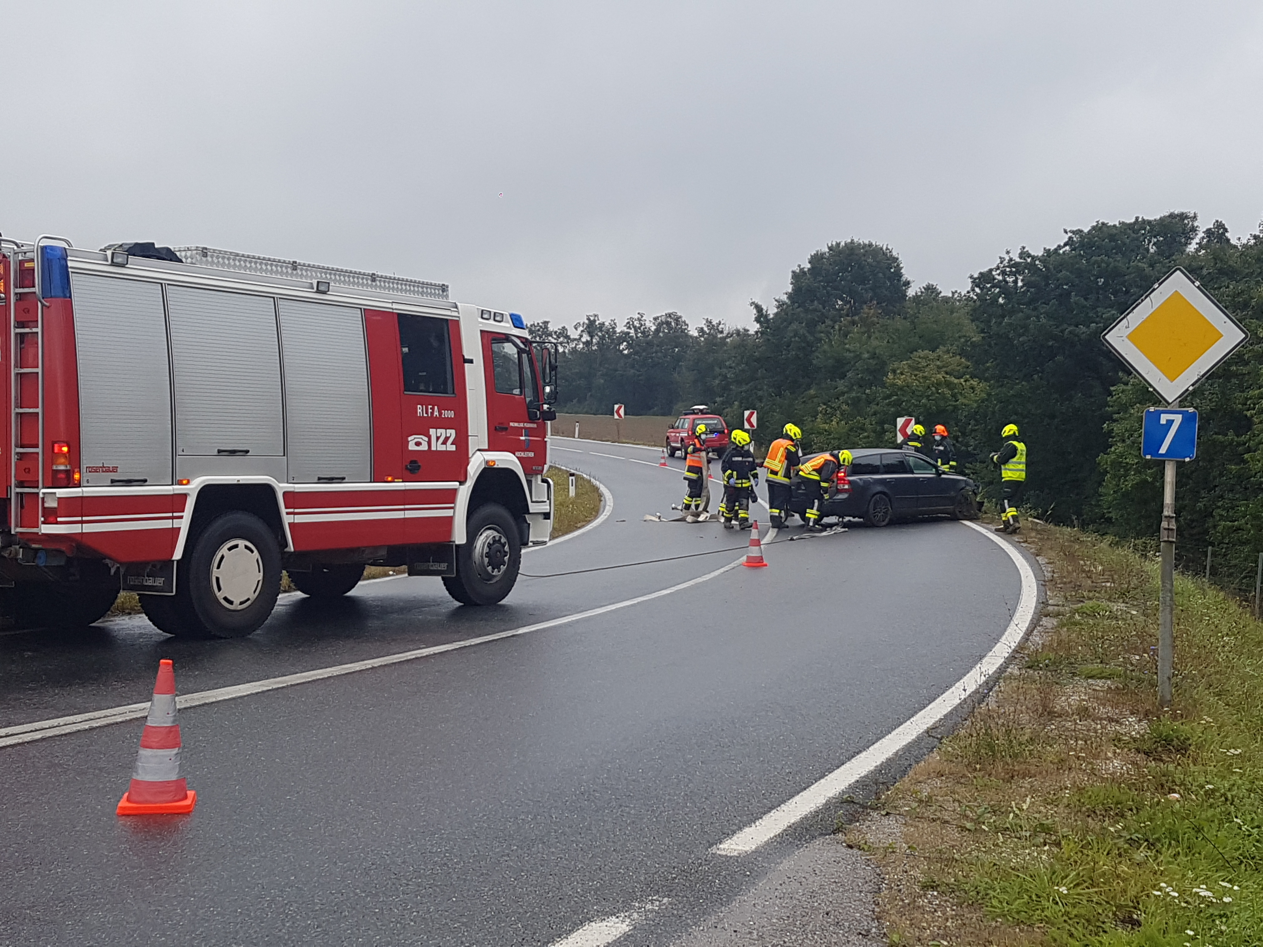 Der Start in die Woche erfolgte mit einer Fahrzeugbergung auf der B7, kurz nach dem Kreisverkehr in der Linkskurve, Fahrtrichtung Kollnbrunn. Ein PKW kam aus unbekannter Ursache von der regennassen Fahrbahn ab, rutschte über die drei Meter tiefe Böschung und prallte gegen den Wildzaun.