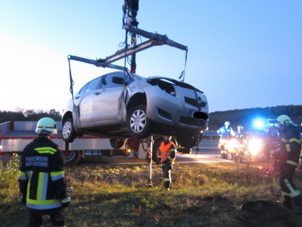 Nach einem Verkehrsunfall mit zwei Pkw wurde die Frewillige Feuerwehr Hochleithen alarmiert. Am Einsatzort angekommen ergab sich folgendes Bild: Ein Pkw stand auf der Fahrbahn, der andere lag im Graben.