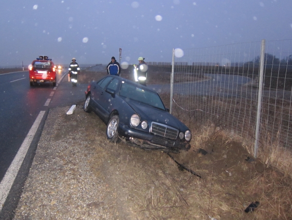 Ein PKW kam auf der spiegelglatten Fahrbahn ins Schleudern und schlitterte in den Straßengraben. Der beschädigte PKW wurde mit dem RLF-A auf die Fahrbahn zurückgezogen und am Feldweg abgestellt.
