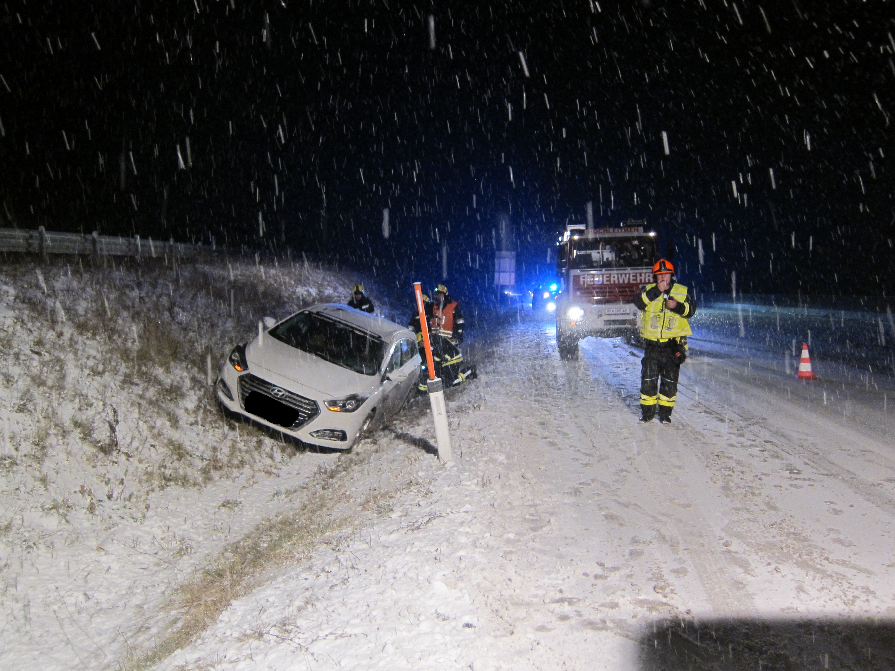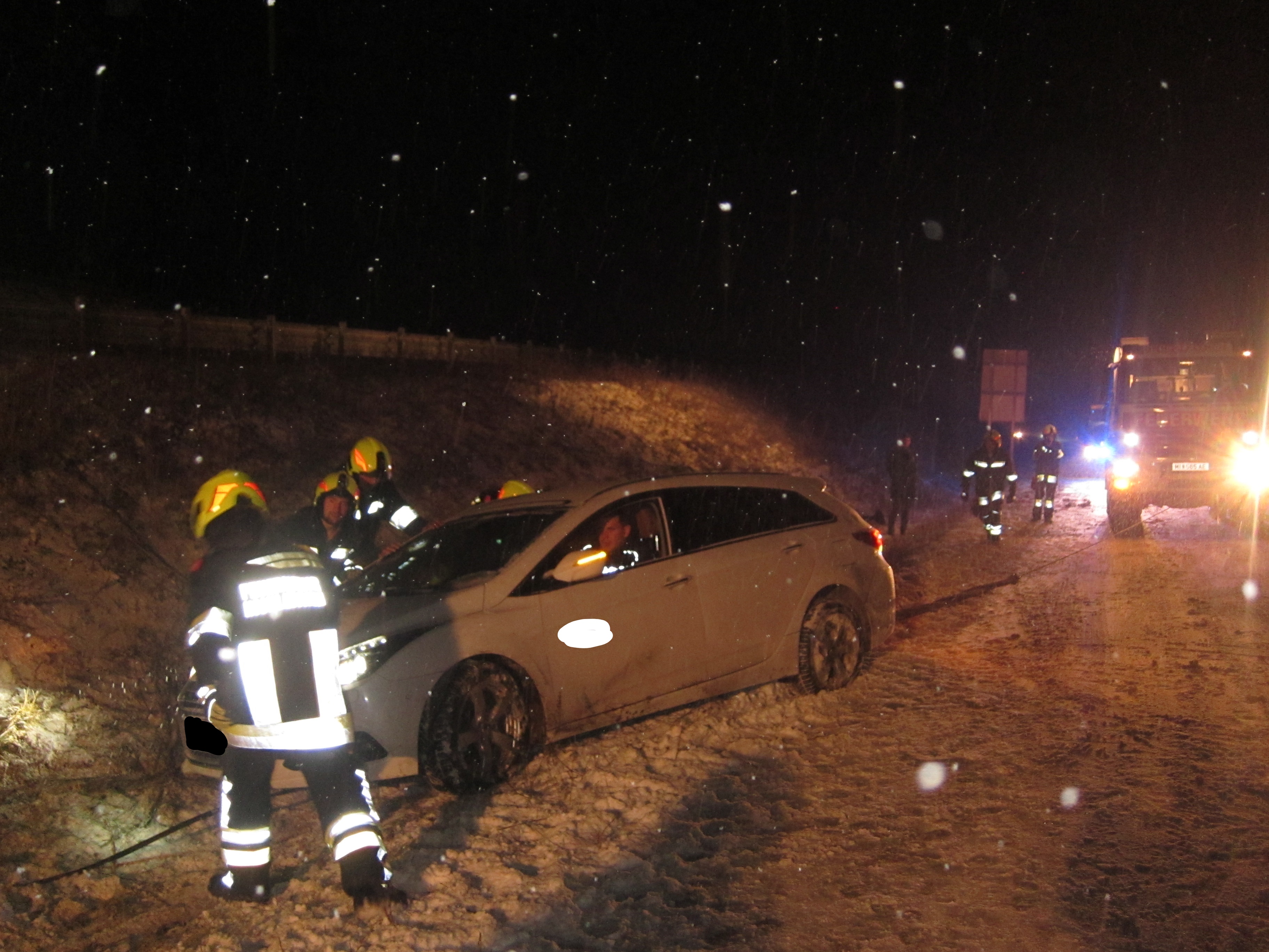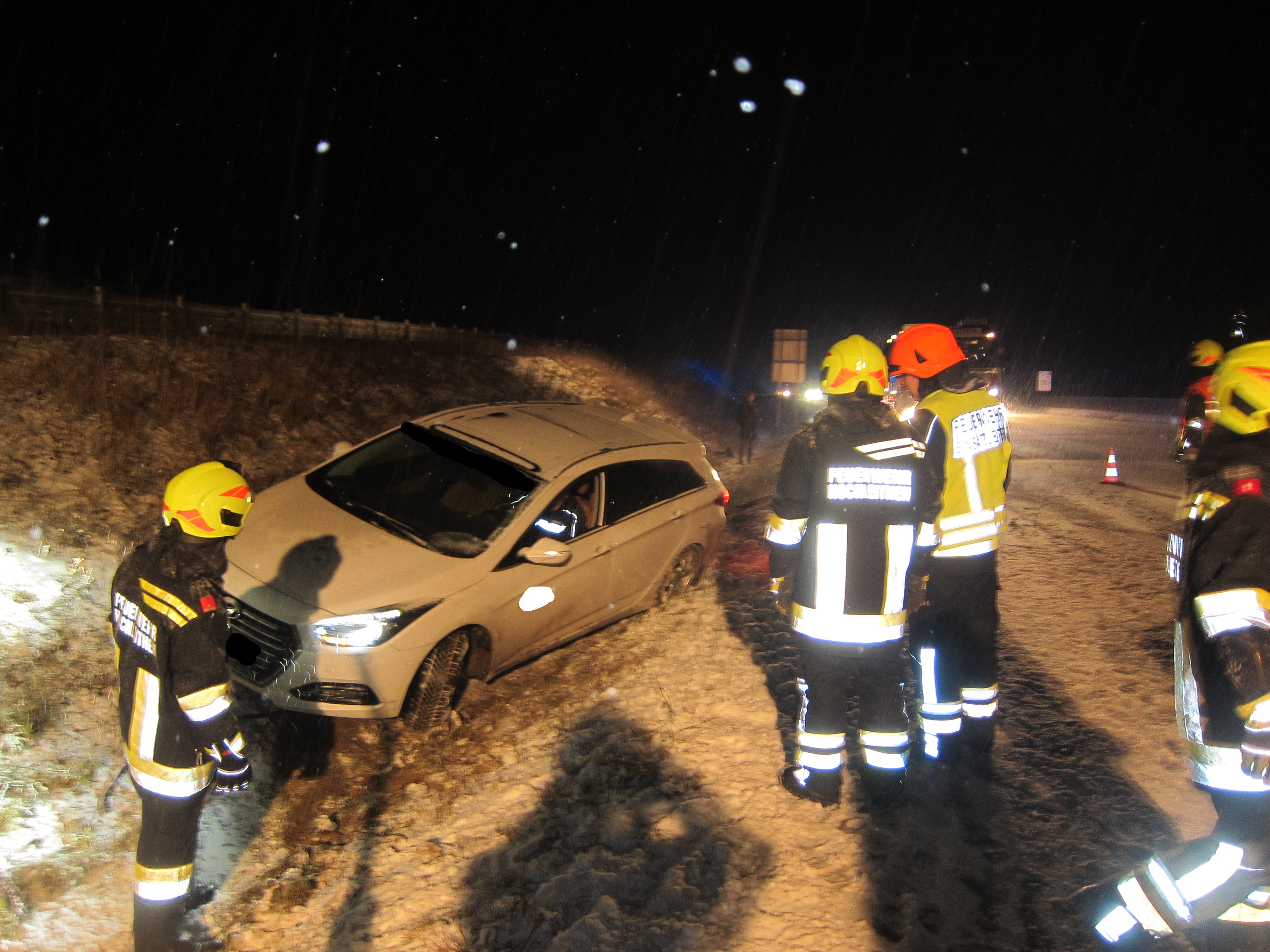 Ein PKW kam aus bisher ungeklärten Gründen von der Fahrbahn ab und schließlich auf der Böschung zum Stillstand. Am Einsatzort angekommen, sicherten wir zuerst die Unfallstelle ab und begannen unverzüglich mit der Bergung des Fahrzeugs. Dazu zogen wir dieses mittels Seilwinde zurück auf die Fahrbahn und versetzten das Auto wieder in einen fahrtüchtigen Zustand. Aufgrund des Schneefalls war bei den Arbeiten höchste Vorsicht geboten. Gleichzeitig wurden wir von der Autobahnpolizei in Kenntnis gesetzt, dass einige Kilometer weiter ein LKW verunfallt war. Da die FF Wolkersdorf bereits am Weg zu unserer Einsatzstelle war, wurde diese vom Einsatzleiter gleich weitergeleitet, um die Bergung des LKWs zu übernehmen.