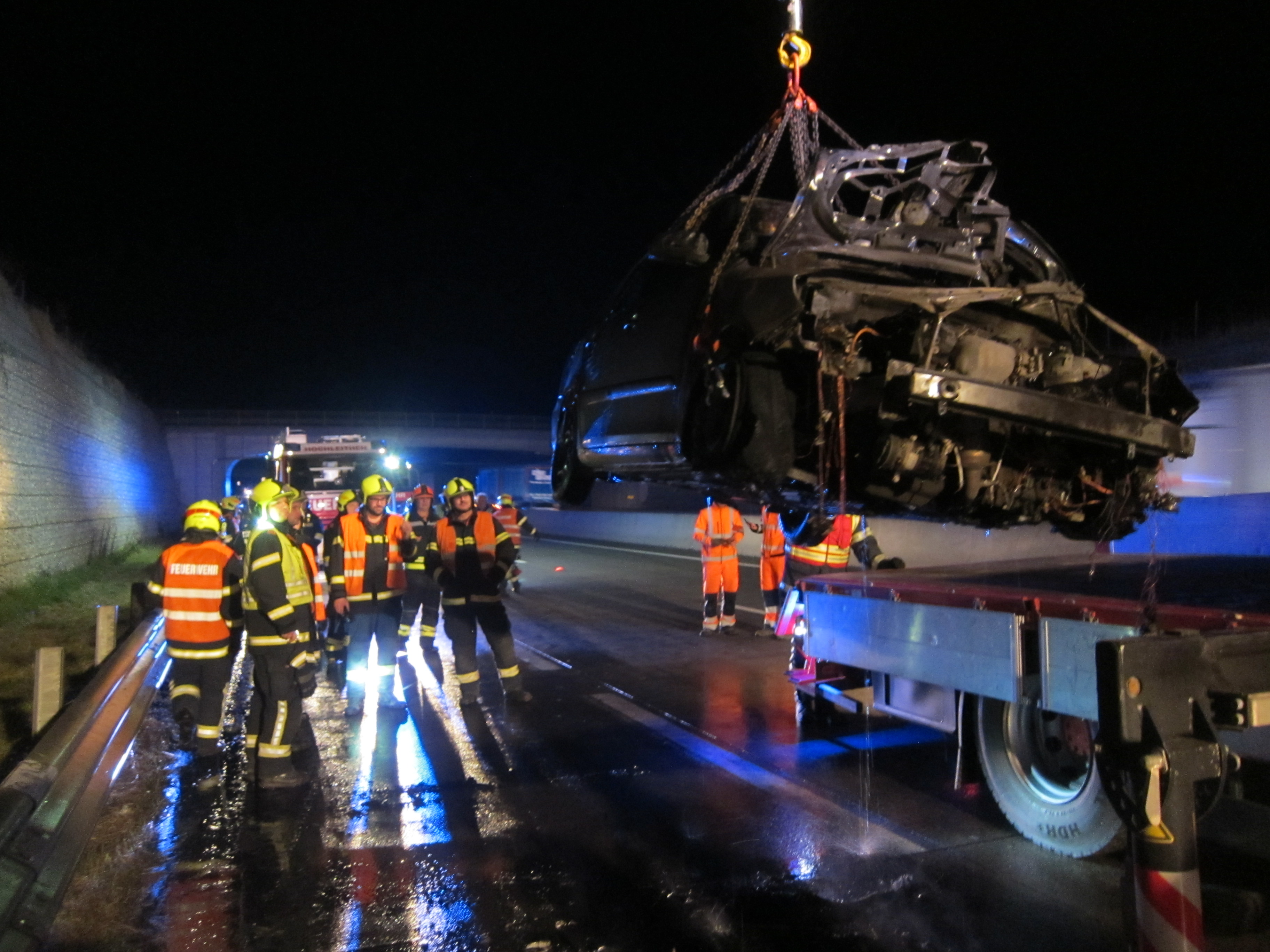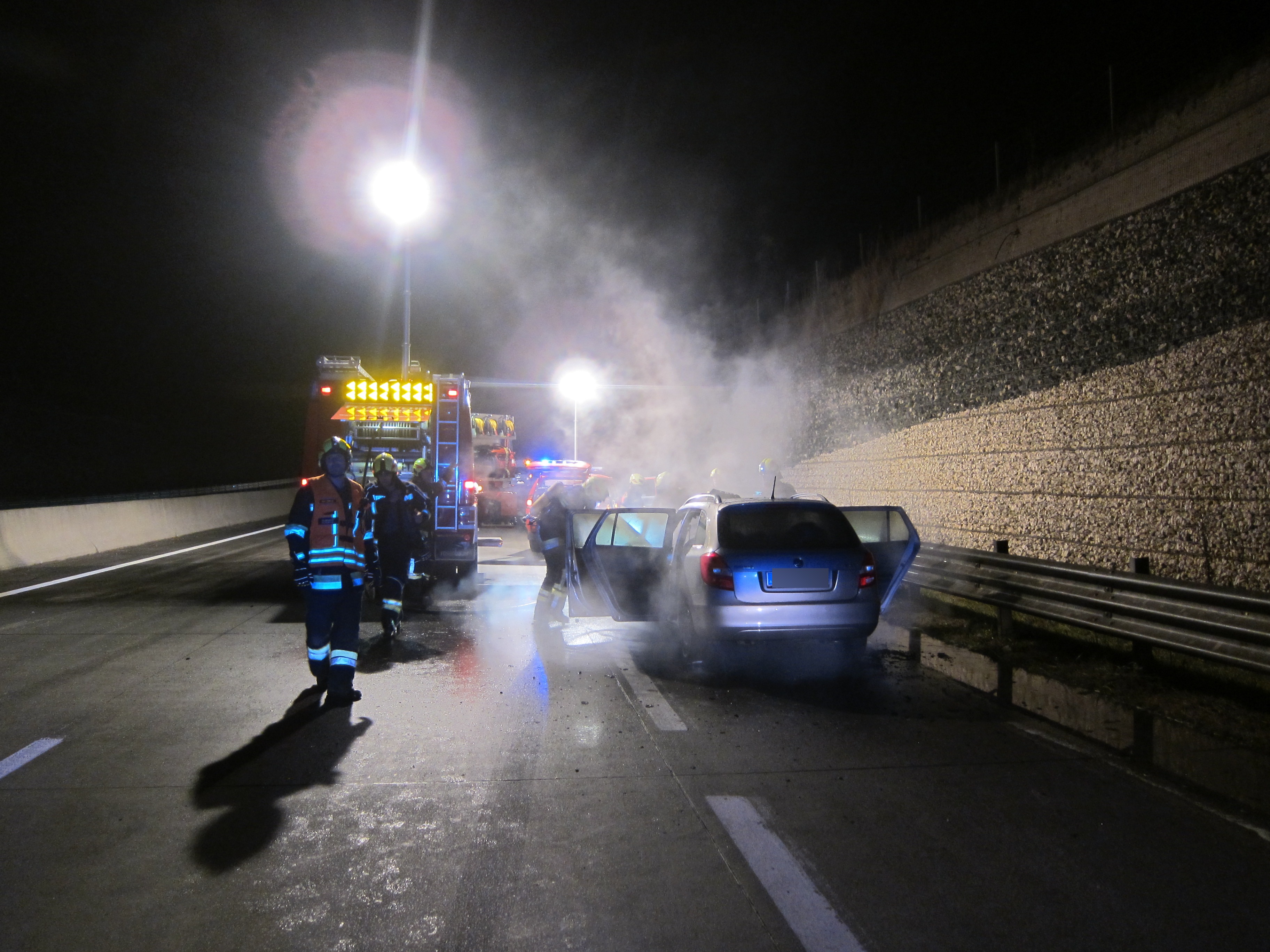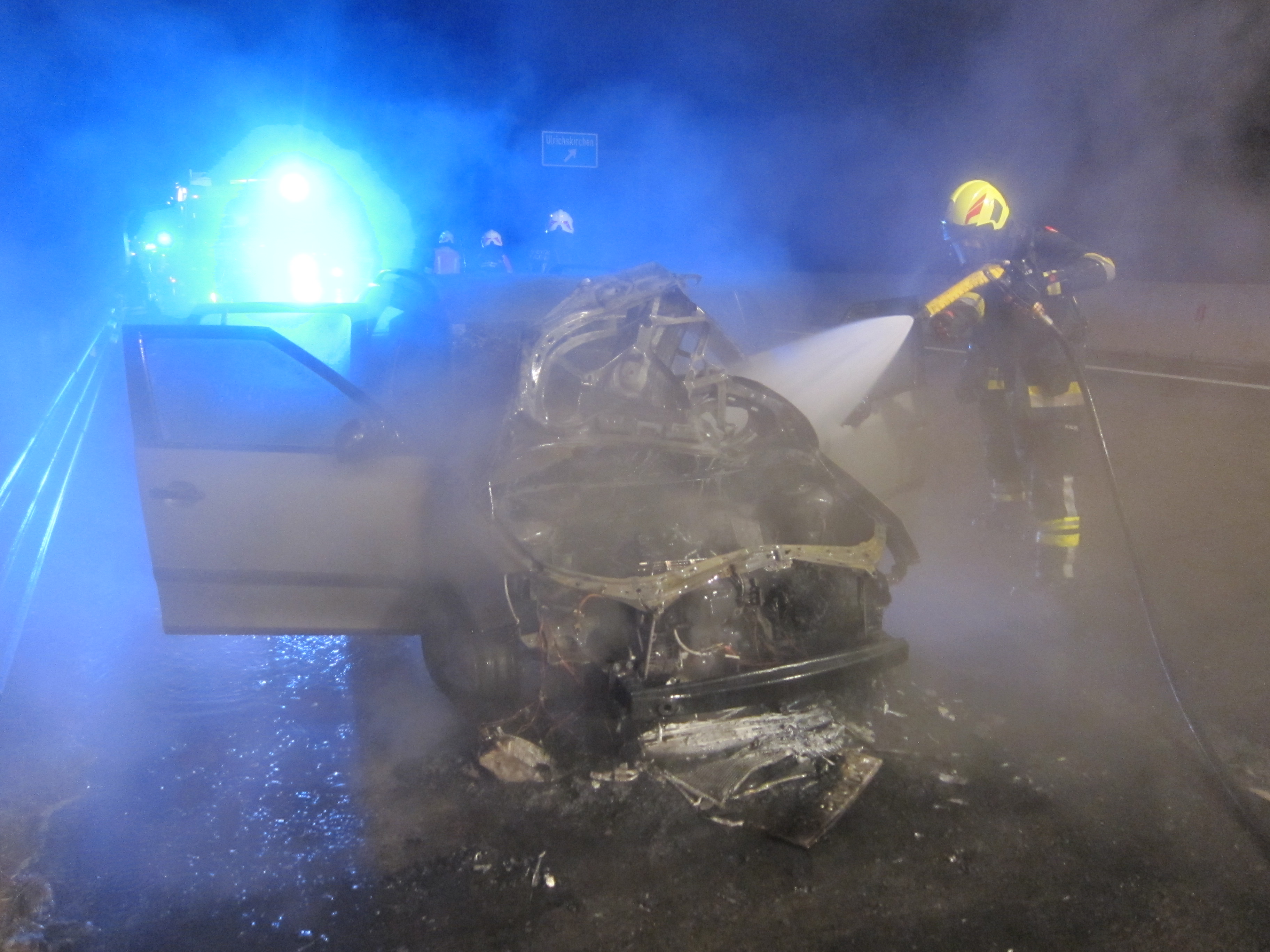 Am Einsatzort angekommen, welcher sich in Fahrtrichtung Wien befand, stand ein PKW auf dem Beschleunigungsstreifen, wobei der Motorraum in Vollbrand stand und die Flammen bereits auf den Fahrerraum übergriffen.
