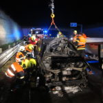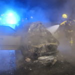 Die Mannschaft des Vorausfahrzeugs startete den ersten Löschangriff und wurde unmittelbar danach von den Kräften des inzwischen eingetroffenen Rüstlöschfahrzeugs mittels Wasserhochdruck-Schnellangriffseinrichtung unterstützt. Schnell stellten sich erste Erfolge ein und die verbleibenden Glutnester wurden dank der Wärmebildkamera rasch aufgespürt und abgelöscht. Schließlich konnte „Brand aus“ gegeben werden und die mitalarmierte FF Wolkersdorf übernahm die abschließende Bergung des schwer beschädigten Fahrzeugs. Im Zuge dieser Arbeiten kam es zu einem Vorfall, bei dem uns wieder einmal bewusst wurde, welch gefährliche Berufung wir ausüben.