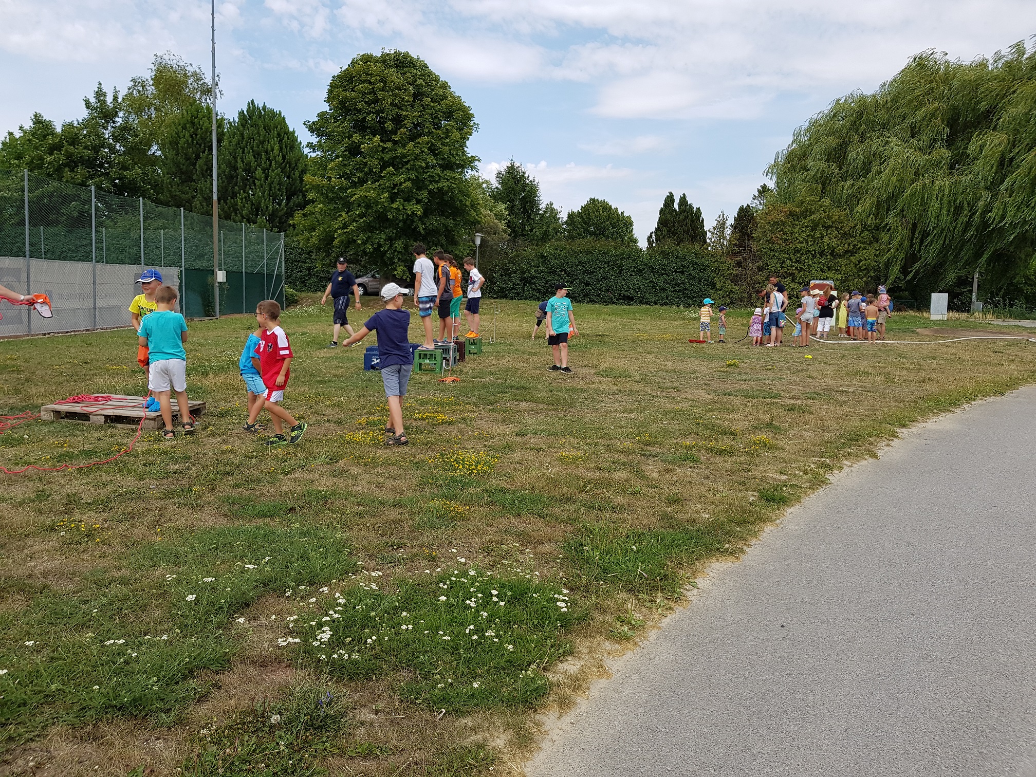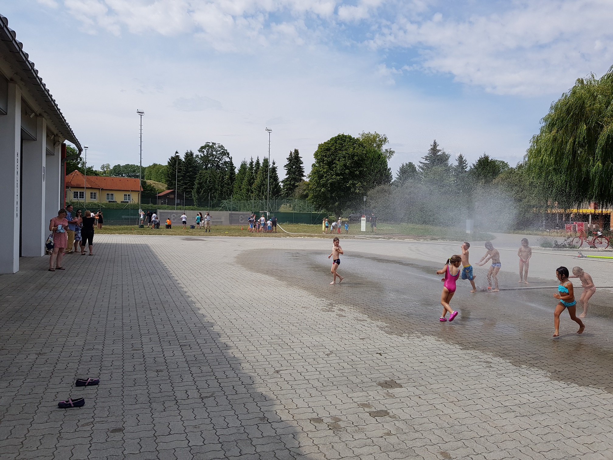 Da es an diesem Tag sehr heiß war, wurde das Hydroschild aufgestellt, wo sich die Kinder abkühlen konnten und sehr viel Spaß hatten.