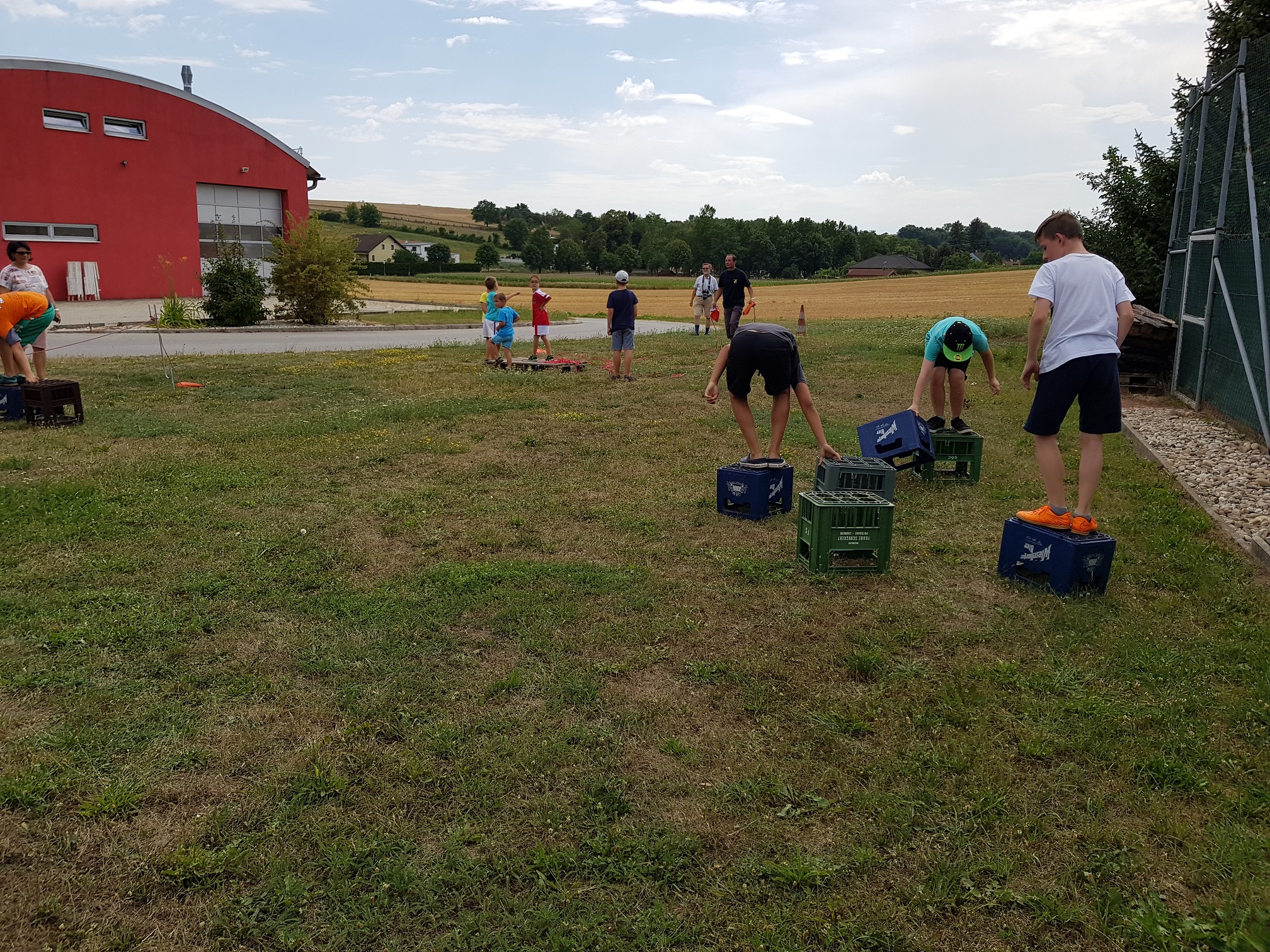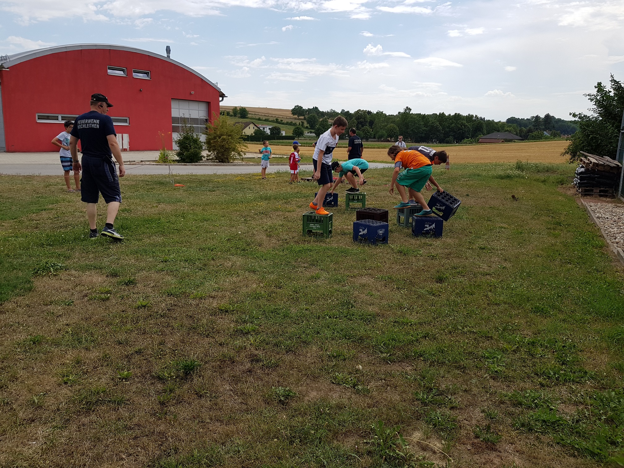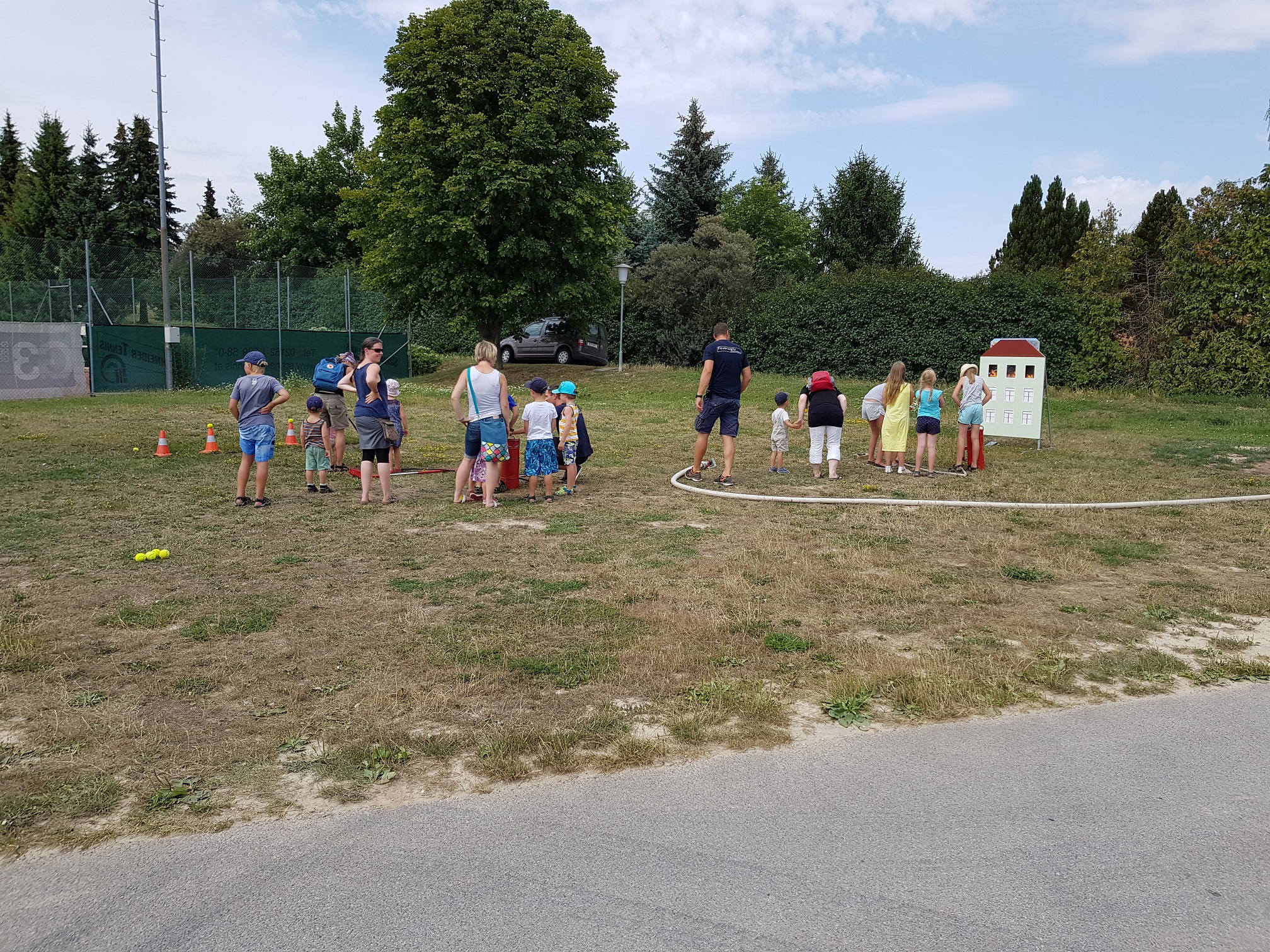 Weiteres wurde eine Spielerrallye veranstaltet, wobei verschiedene Aufgaben zu bewältigen waren, u.a. Kistenschieben, ein brennendes Haus löschen, einen Hindernis-Parcours bewältigen, Leinenwerfen und vieles mehr.