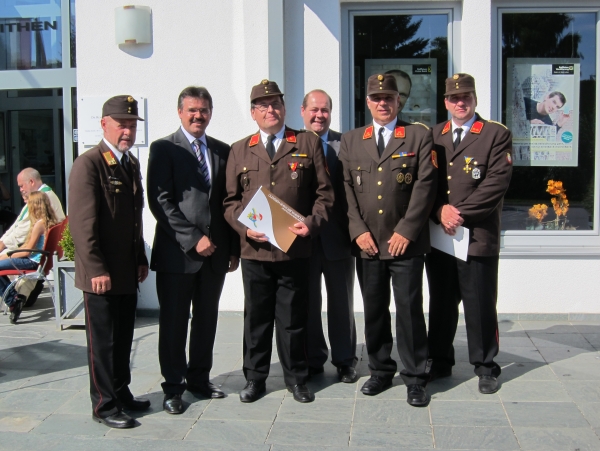 Nach der hl. Messe wurden vom Abschnittskommandanten BR Johann Rernböck und Landtagsabgeordneten Hr. Ing. Manfred Schulz folgende Ehrungen durchgeführt: