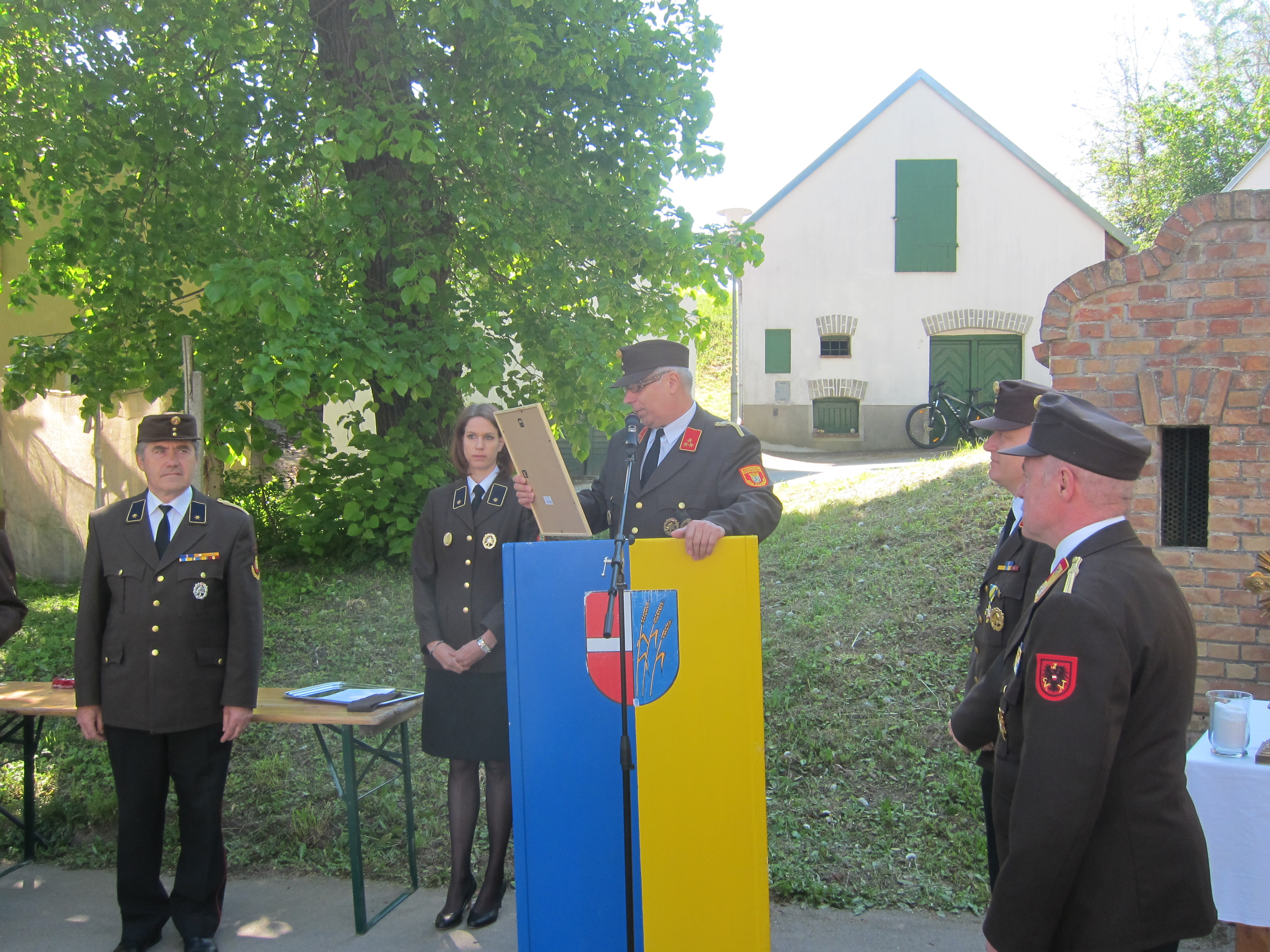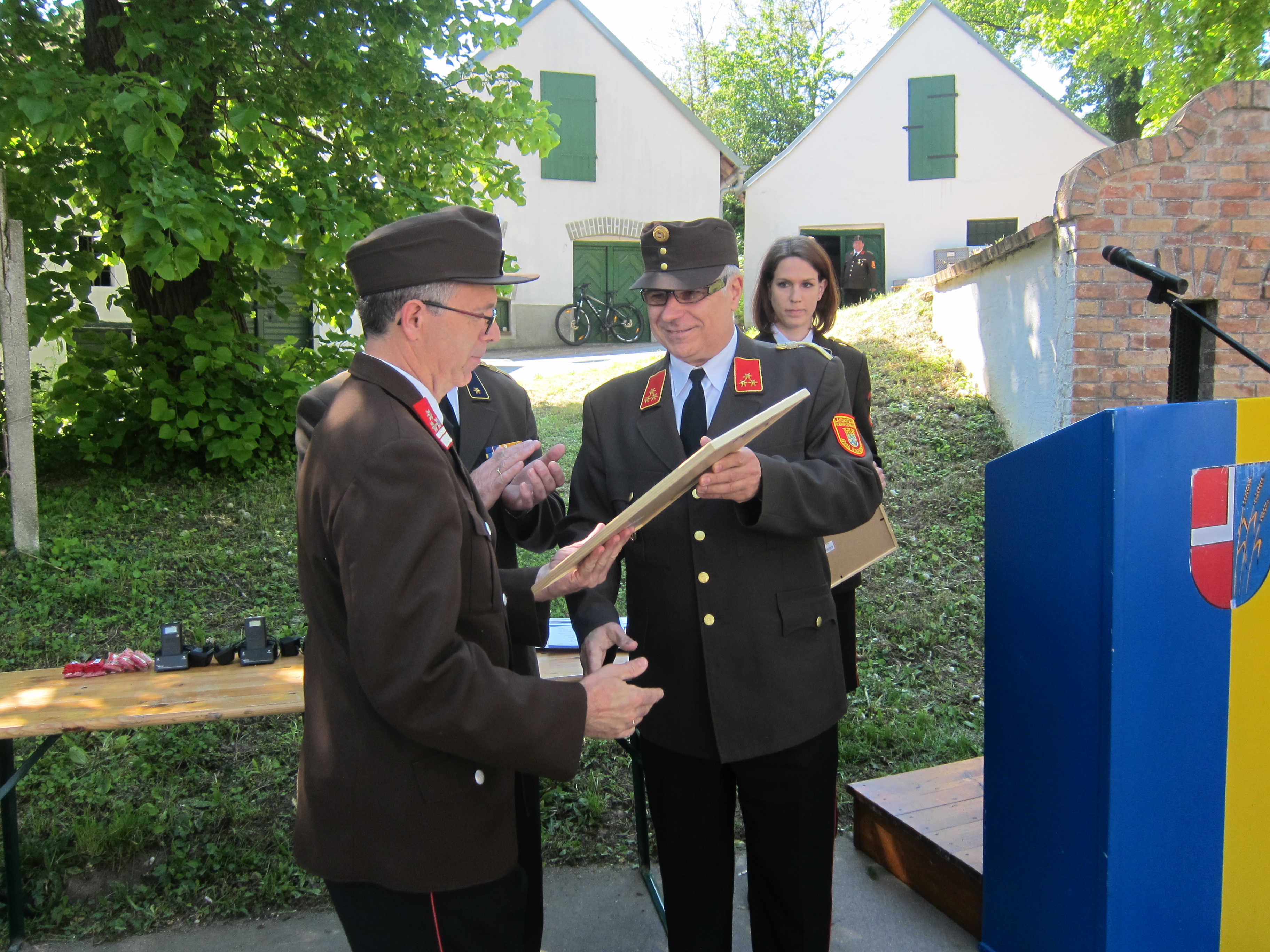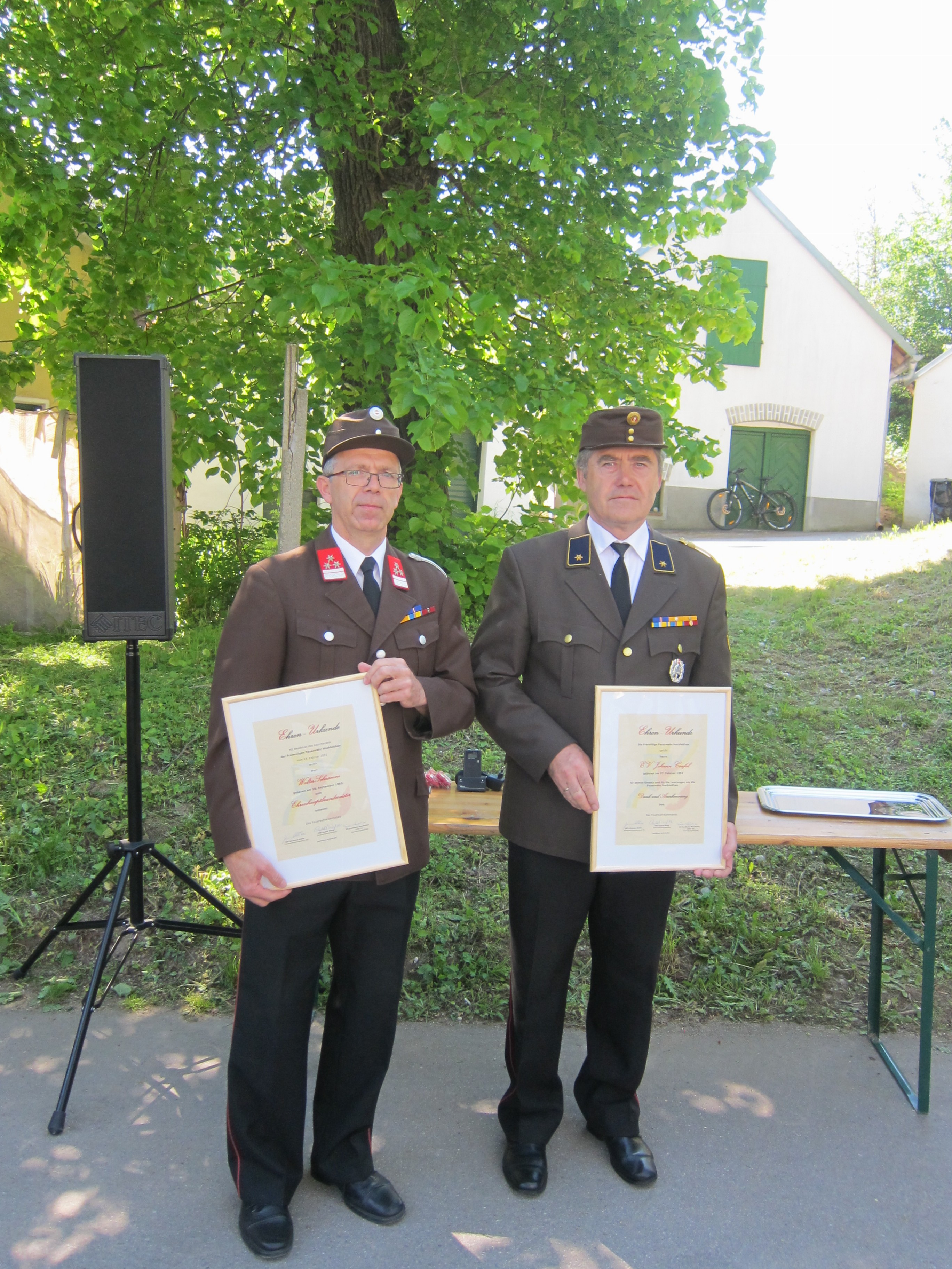 Weiters erhielt EV Johann Coufal eine Ehrenurkunde zum Dank und Anerkennung unserer Feuerwehr und HBM Walter Schramm wurde zum Ehrenhauptbrandmeister ernannt, da unsere beiden Kameraden seit 1999 die Funktion als Zugskommandanten ausübten und diese mit Anfang des Jahres zurücklegten.
