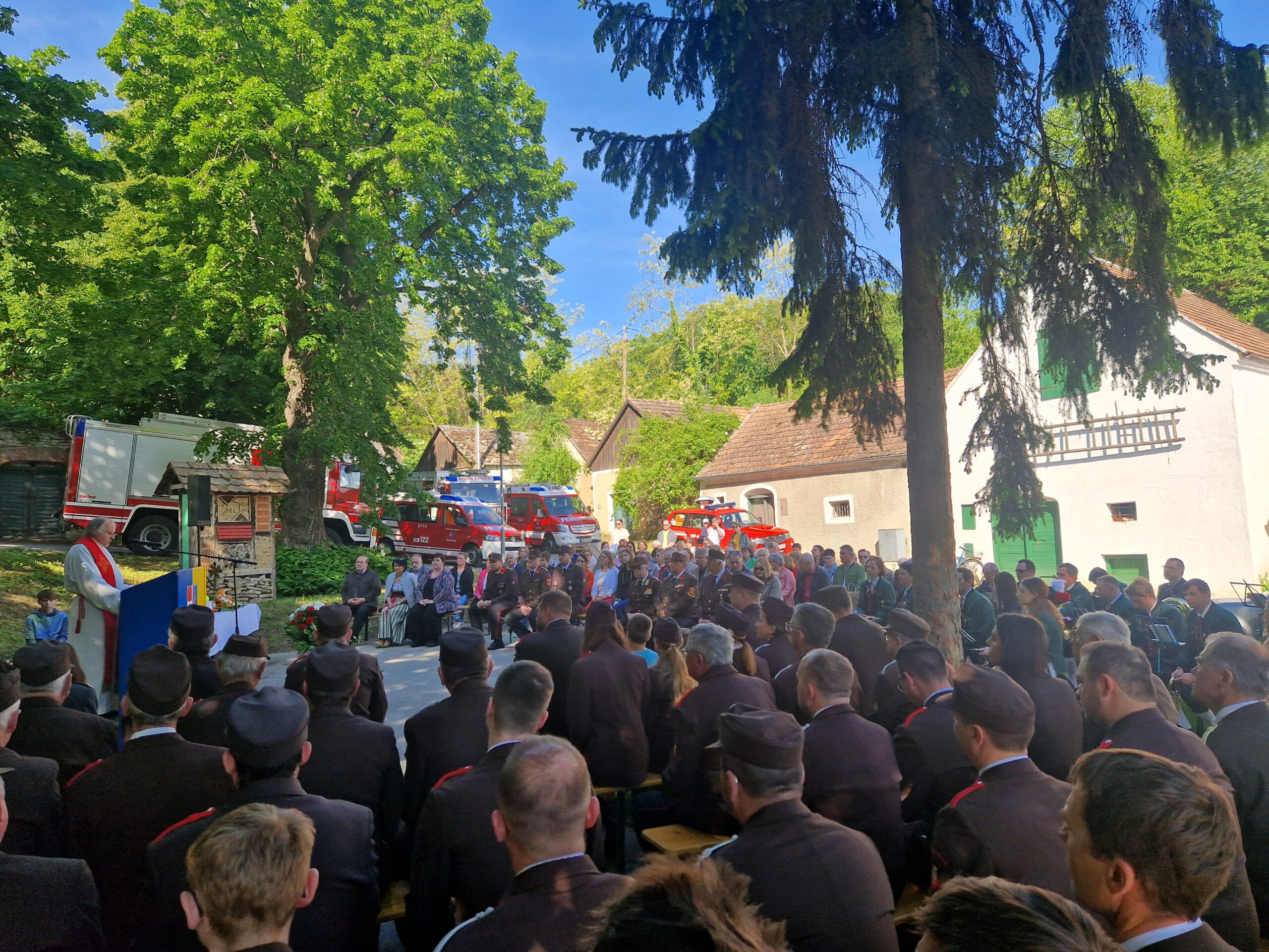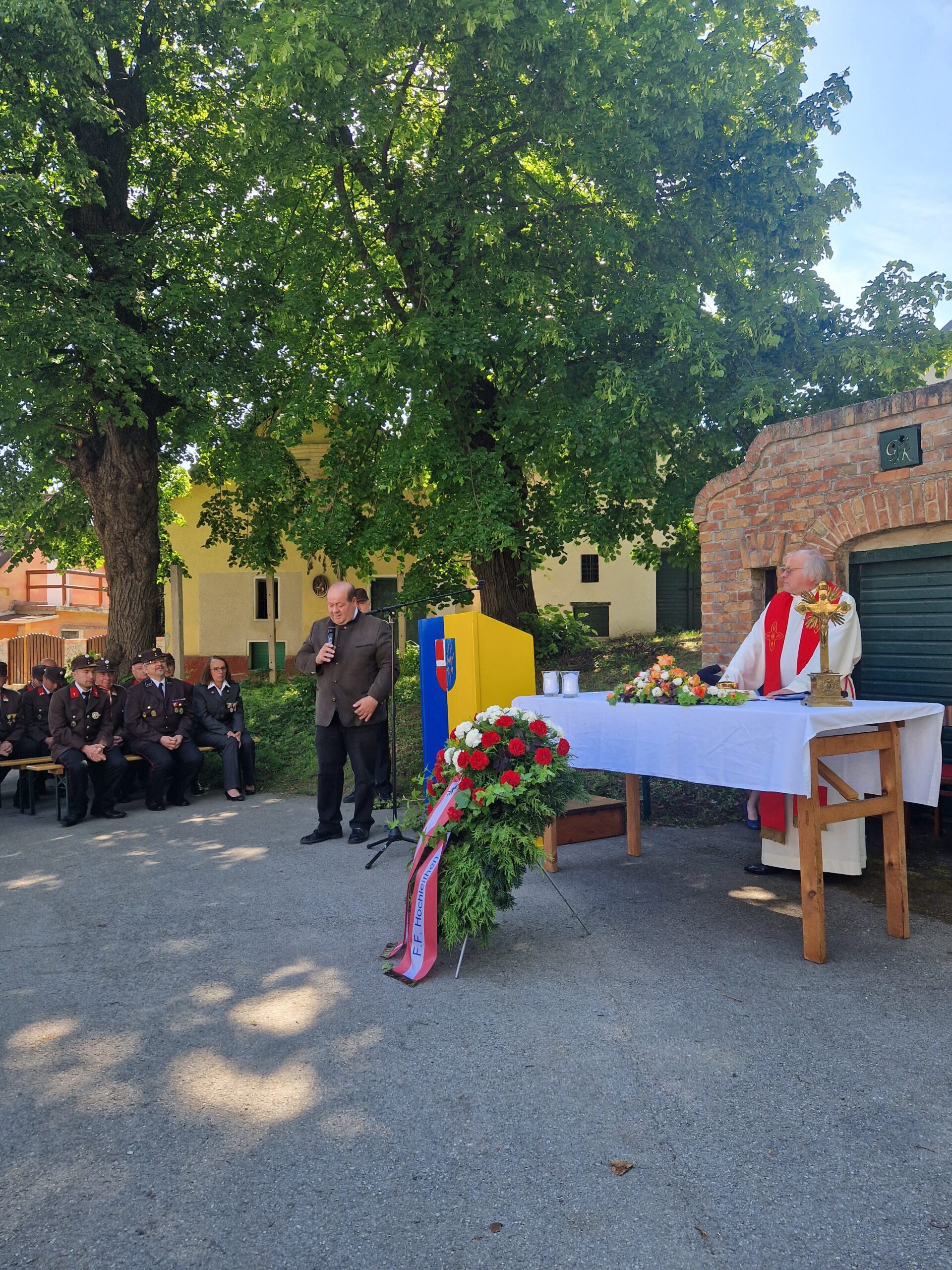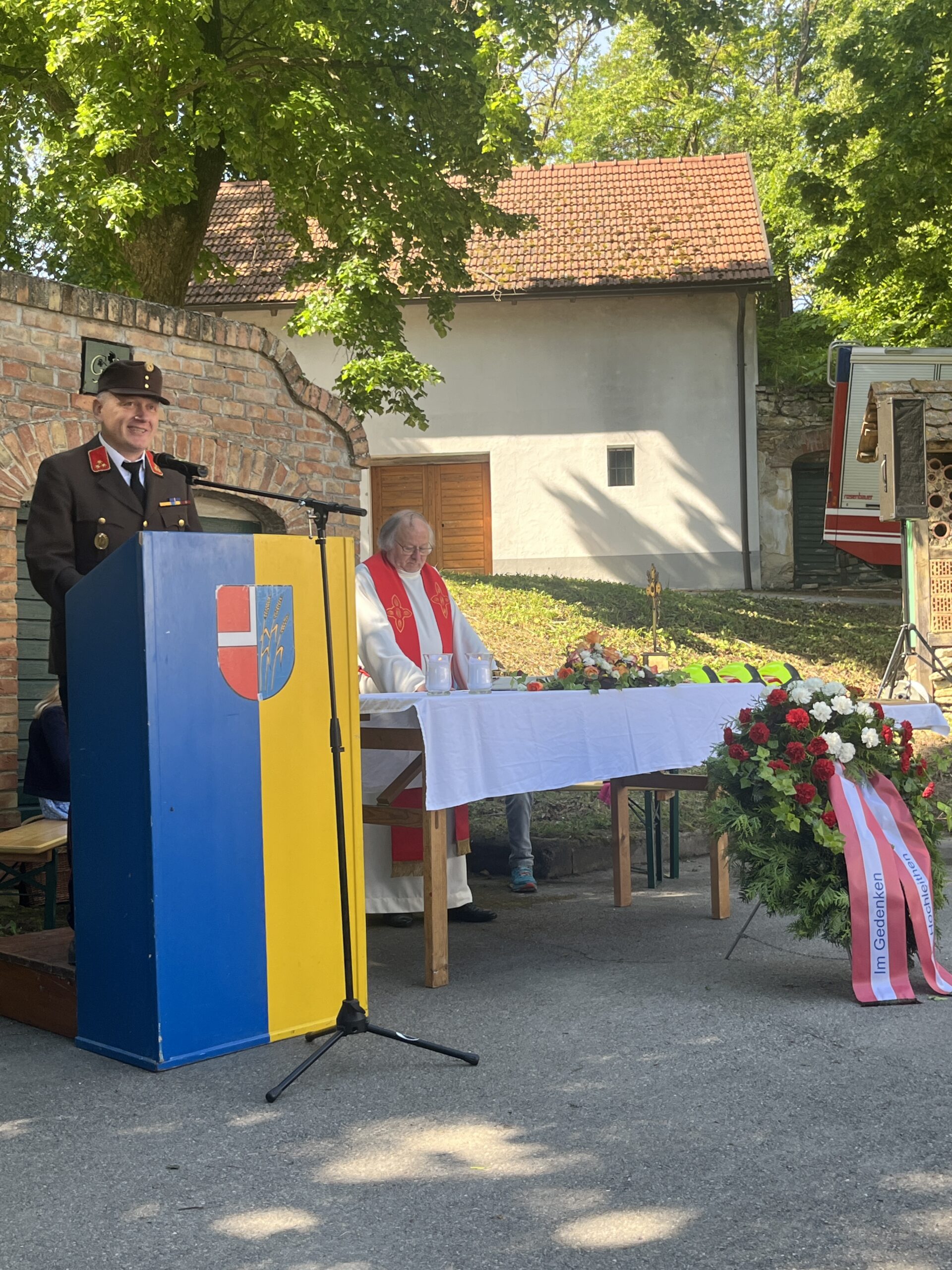 Bürgermeister Ing. Adolf Mechtler betonte in seiner abschließenden Rede den Zusammenhalt der drei Orte als eine Gemeinde. Im Anschluss lud die Freiwillige Feuerwehr Hochleithen zur Agape und zu Rundfahrten mit den Feuerwehrfahrzeugen ein.