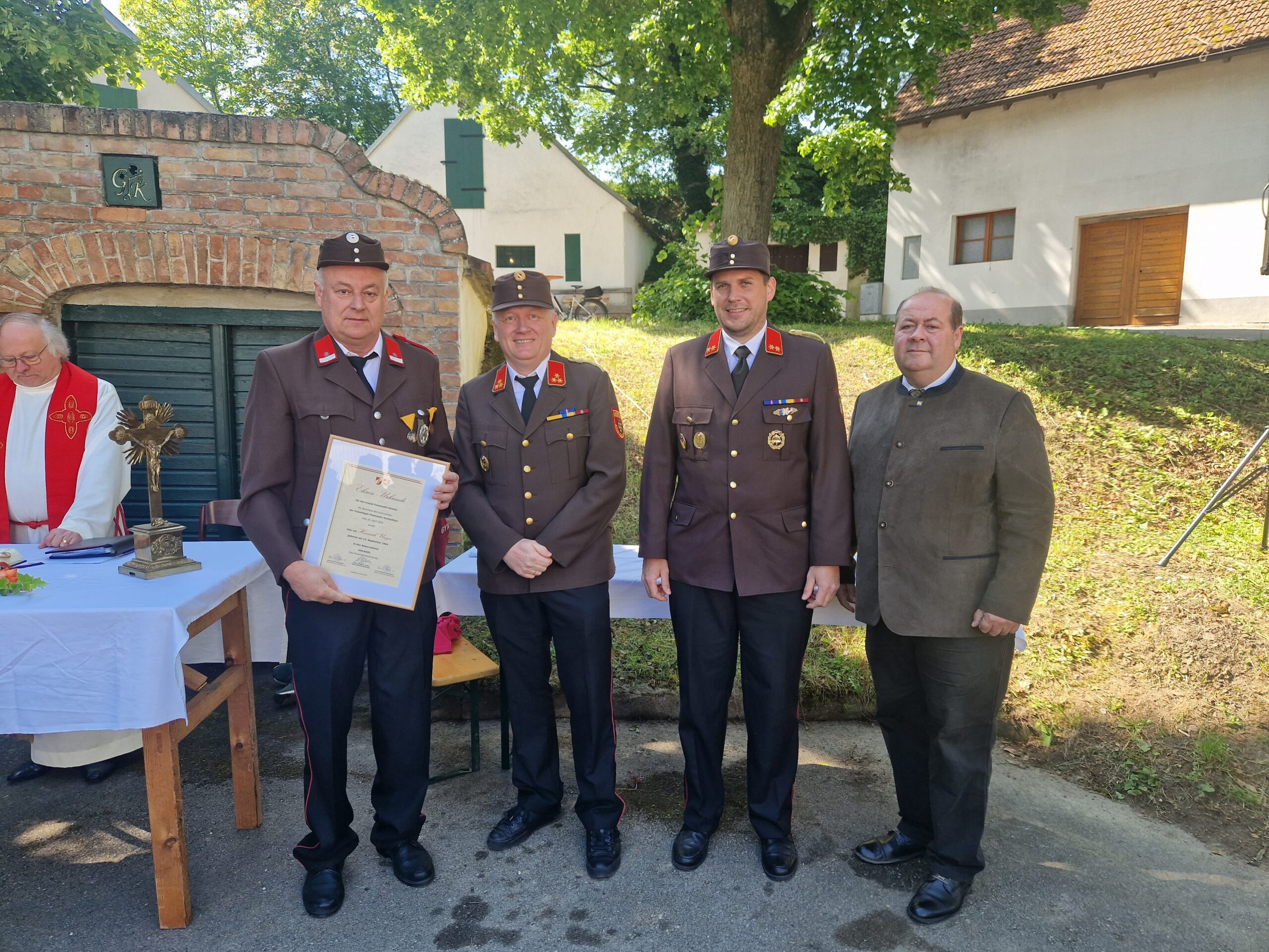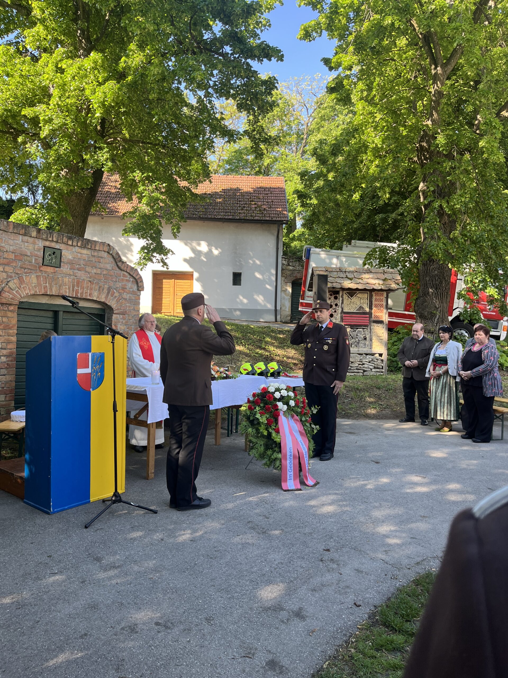 Bei strahlendem Sonnenschein wurde die Florianifeier im Kellergassenpark Bogenneusiedl mit der zahlreich erschienenen Bevölkerung und der Gemeindeführung gefeiert. Ein herzliches Dankeschön gilt an dieser Stelle dem Musikverein Hochleithen für die musikalische Umrahmung der Feier und Pater Jan sowie seinen Ministranten für die Abhaltung der hl. Messe. Unser Kommandant HBI Johannes Koller bedankte sich in seiner Rede bei der ganzen Mannschaft für ihren unermüdlichen Einsatz und die Bereitschaft, anderen zu helfen.