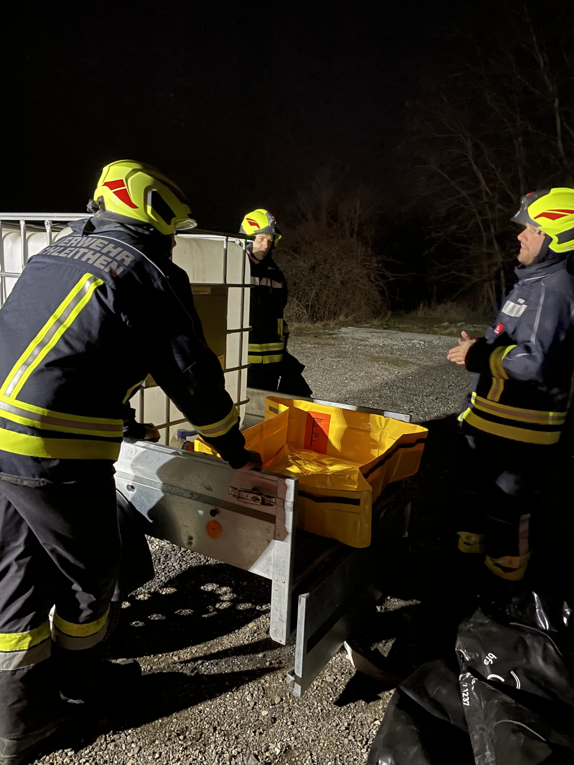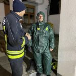 Der Übungsdurchgang im März wurde als eine kombinierte Übung, aufgeteilt auf vier Gruppen, abgehalten. Zentrale Themen waren verschiedenste Methoden zum Auffangen von Schadstoffen, das richtige Ausrüsten mit Schutzanzügen sowie die Kommunikation über Funk zwischen den verschiedenen Trupps.