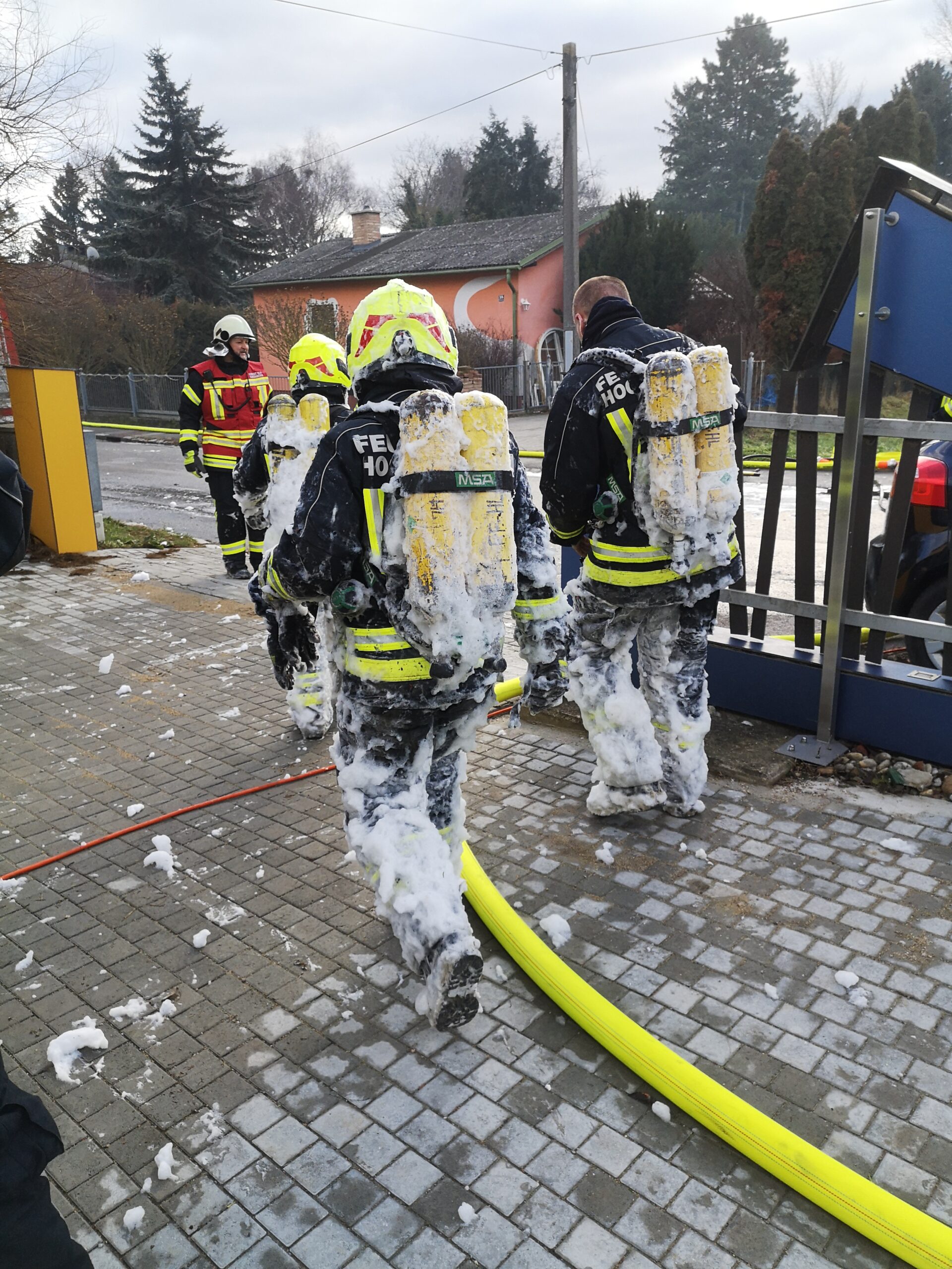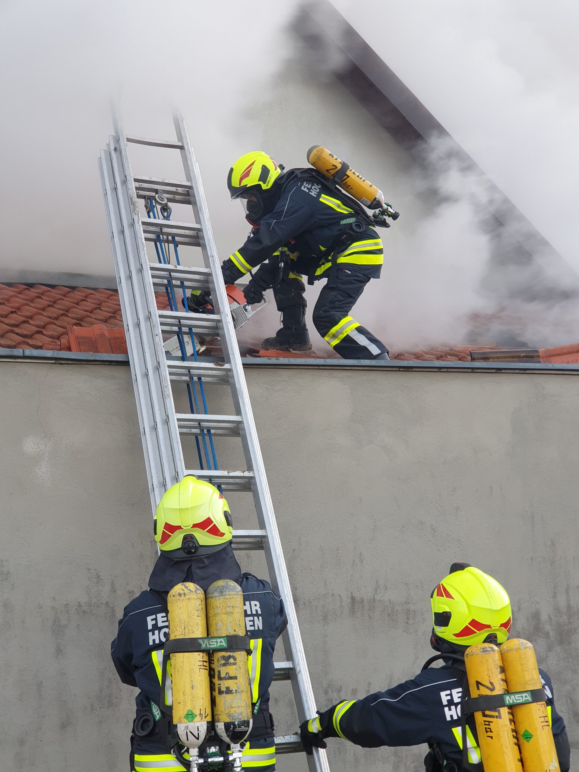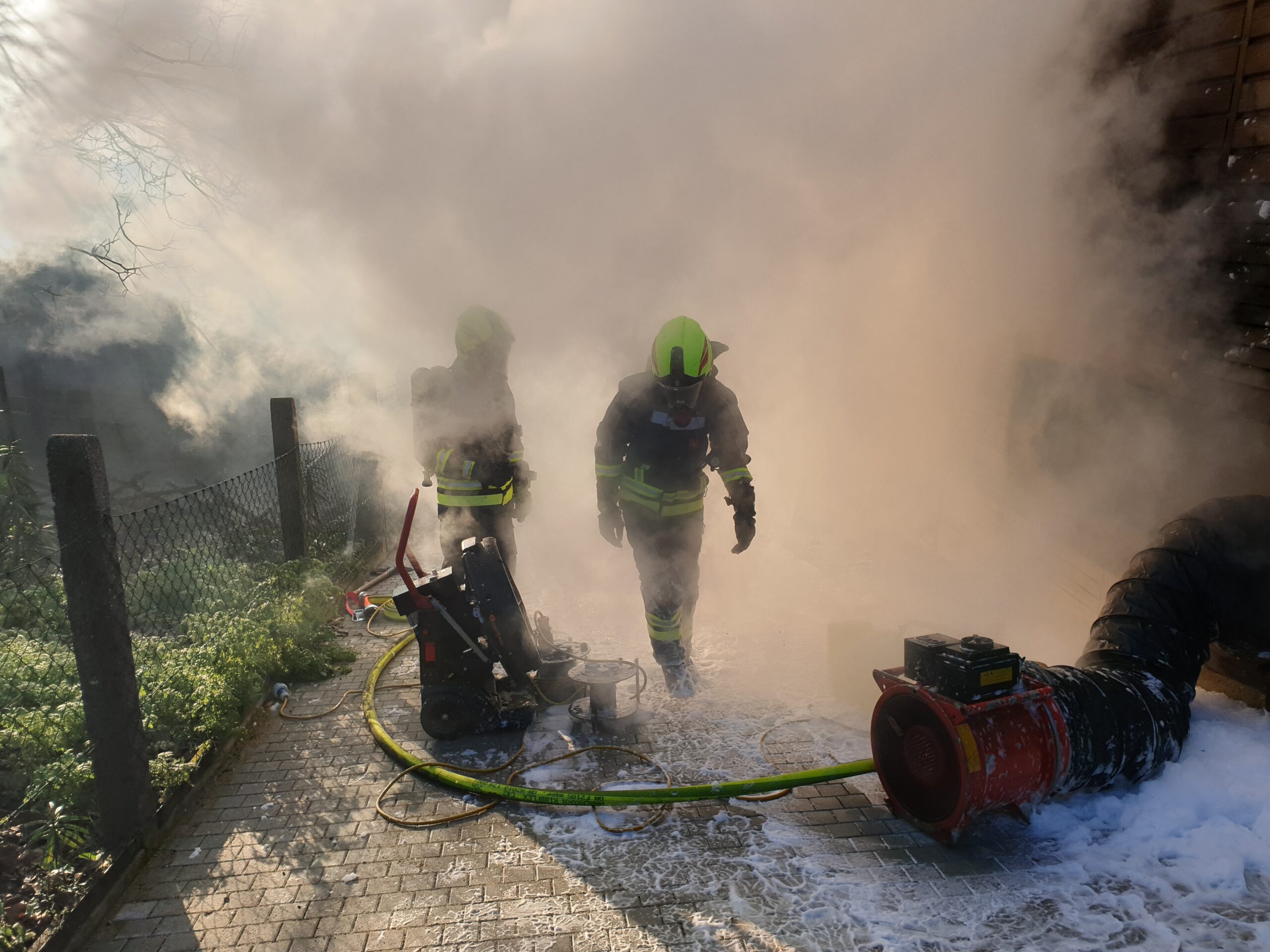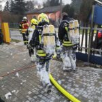 Wir besetzten Rüstlöschfahrzeug und Tanklöschfahrzeug großteils mit Atemschutzträgern und rückten anschließend aus. Am Einsatzort eingetroffen, unterstützen wir nach Absprache mit dem Einsatzleiter sofort die sich bereits im Einsatz befindlichen Kräfte bei dem umfassenden Außenangriff mit mehreren Strahlrohren. Im Verlauf des Einsatzes öffneten wir zusätzlich das Dach um die Zwischendecken effektiv abzulöschen und anschließend wurde das Gebäude mit Leichtschaum geflutet um die Brandlast weiter zu reduzieren. Schlussendlich konnte nach rund sechs herausfordernden Stunden „Brand aus“ gegeben werden.