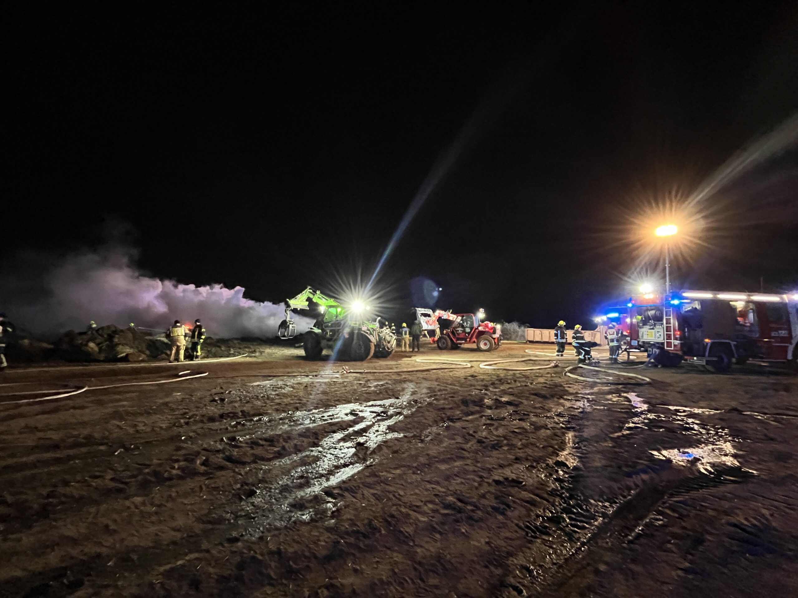Gestern Abend kam es auf einem Holzlagerplatz neben der A5 nahe Wolkersdorf zu einem Großbrand. Obwohl aufgrund der Freifläche vor Ort keine Gefahr für angrenzende Gebäude bestand, musste durch die erschwerten Bedingungen der Löschwasserversorgung ein Pendelverkehr am Einsatzort mit mehreren Tanklöschfahrzeugen eingerichtet werden, zu dem auch wir mit unserem TLF zur Unterstützung angefordert wurden. Nach einigen Stunden konnte die Mannschaft unseres eingesetzten Fahrzeuges schließlich wieder in unser Feuerwehrhaus einrücken.