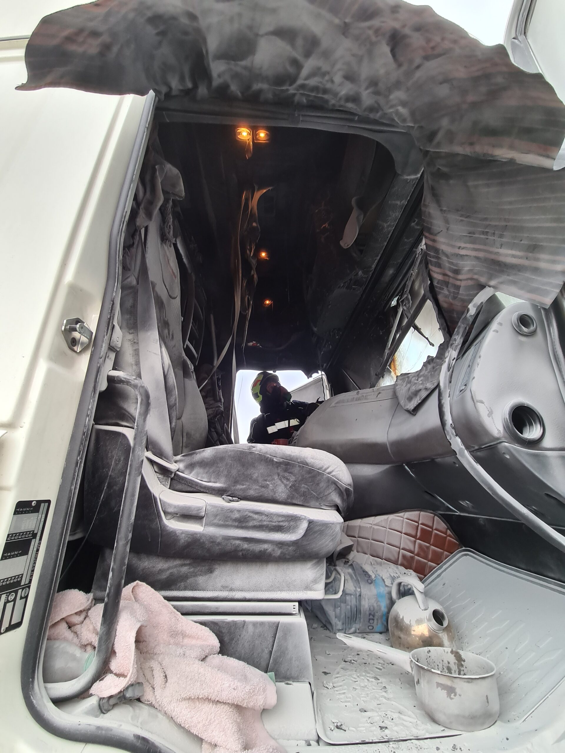 Vor Ort war kein Feuer mehr in der Fahrerkabine ersichtlich, da bereits erste Löschmaßnahmen durch den Fahrer mittels Feuerlöscher getätigt wurden, welche zu einem Löscherfolg führten.