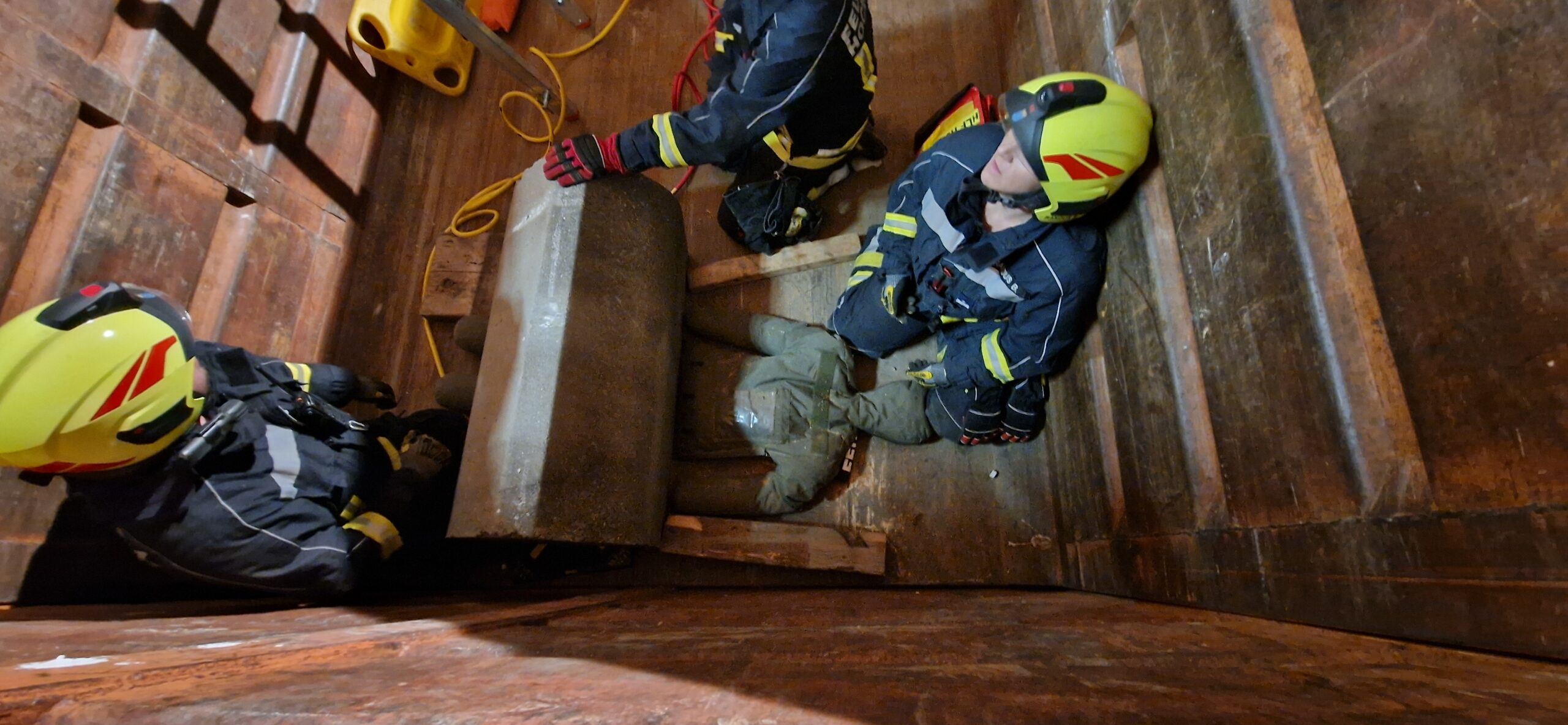 Als Abschlussübung für das Jahr 2024 stand eine Menschenrettung aus Höhen und Tiefen auf unserem Übungsplan.