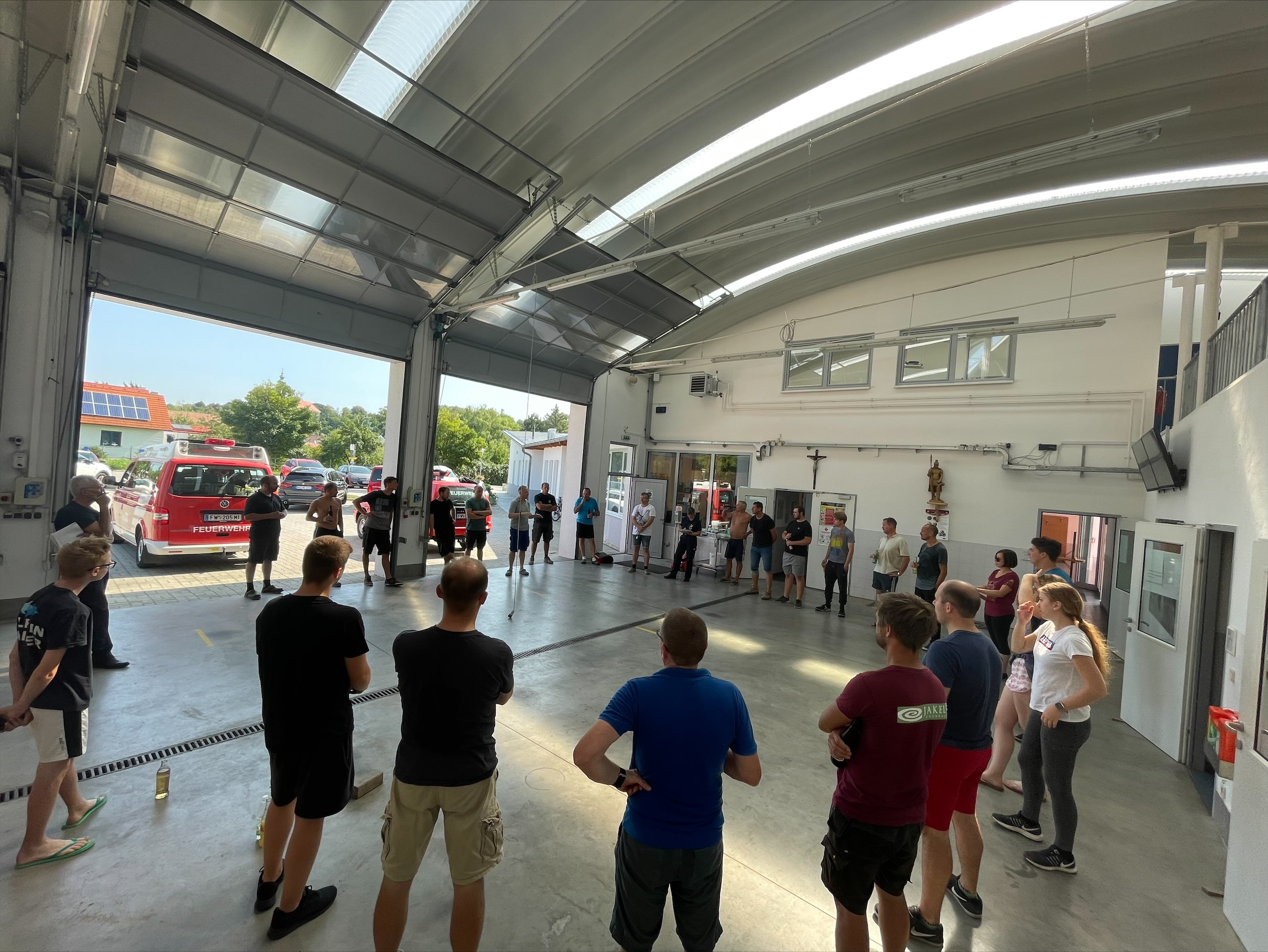 Unmittelbar nach Beendigung des Einsatzes erfolgte im Feuerwehrhaus mit der gesamten eingesetzten Mannschaft eine Nachbesprechung mit den eingetroffenen Feuerwehrpeers.