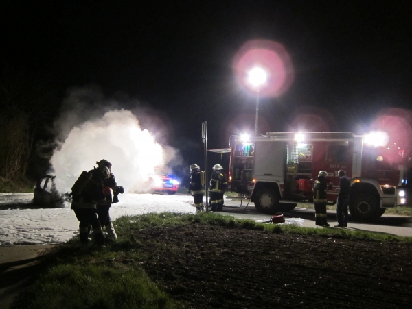 Während der Fahrt bemerkte der Autolenker Flammen am Fahrzeug. Gleich darauf brachte er das Fahrzeug am Straßenrand zum Stillstand. Innerhalb kurzer Zeit stand der PKW in Vollbrand. Die Feuerwehr Hochleithen setzte mit dem VRF die ersten Löschmaßnahmen, die nachkommenden RLF und TLF konnten den Brand rasch zum Erlöschen bringen. © Feuerwehr Hochleithen