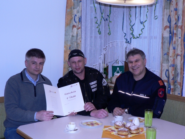 Preisübergabe | 22.02.2009 – 19:00 | Der Hauptgewinn von unserer Eintrittskartenverlosung wurde in der Tischlerei Senger in Traunfeld übergeben. Der Gewinner ist Herr Staufer aus Wolfpassing. Wir gratulieren!!!! © Feuerwehr Hochleithen Bilder Autor: Stefan Ausfelder KommentarnavigationZurückVorheriger Beitrag:Fußballspiel mit FF WolkersdorfNächstesNächster Beitrag:BlutspendeaktionÄhnliche BeträgePatenschaft für neue Atemluftflaschen4. Dezember 2025Weihnachtsfeier der Feuerwehr Hochleithen29. November 2025Perchtenshow der Jugend Hochleithen15. November 2025Einsatzübung mit Menschenrettung12. November 2025Laternenfest vom Kindergarten Hochleithen11. November 2025Ausbildungsprüfung Atemschutz25. Oktober 2025