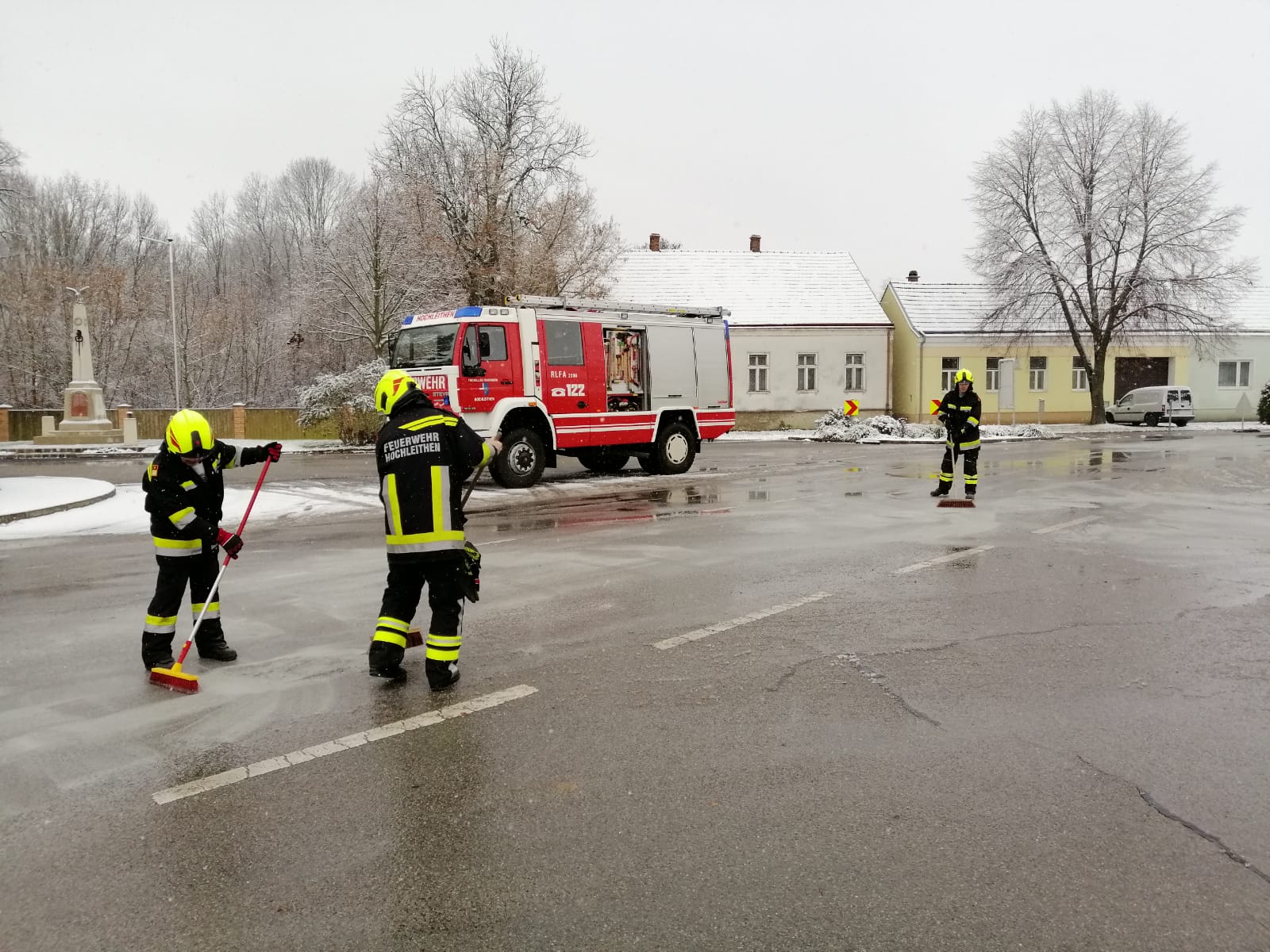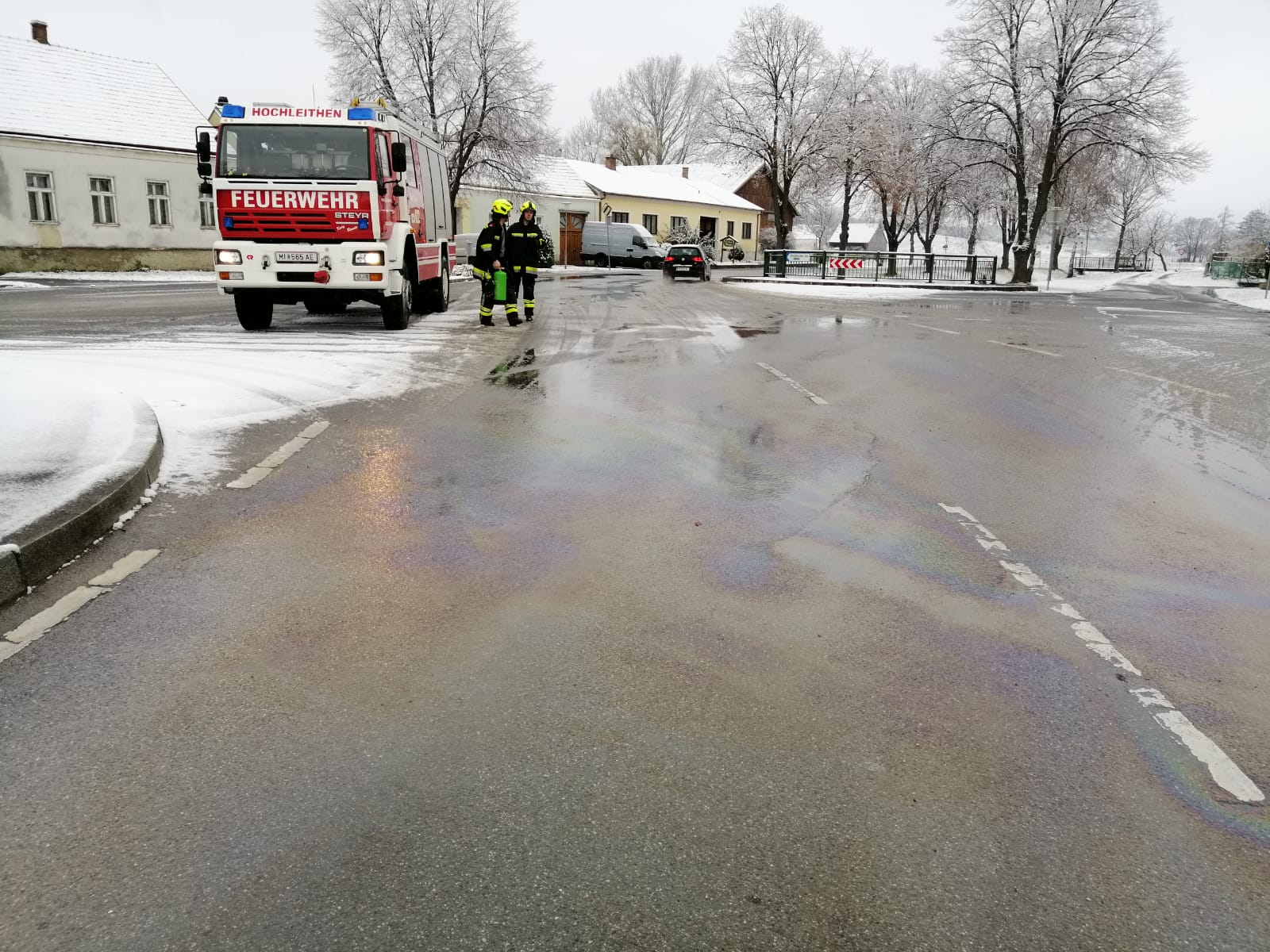 Während des ersten Schneefalls im Dezember wurden wir zu einem Schadstoffeinsatz nach Traunfeld alarmiert.