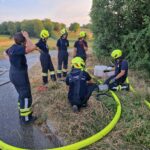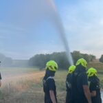 Dabei wurde mit dem Aufbau einer Löschleitung begonnen und im Anschluss der richtige Umgang mit den verschiedenen Strahlrohren geübt. Des Weiteren machten sie sich mit dem Zumischer sowie den unterschiedlichen Schaumrohren vertraut, welche für die Brandbekämpfung mittels Schaum eingesetzt werden.
