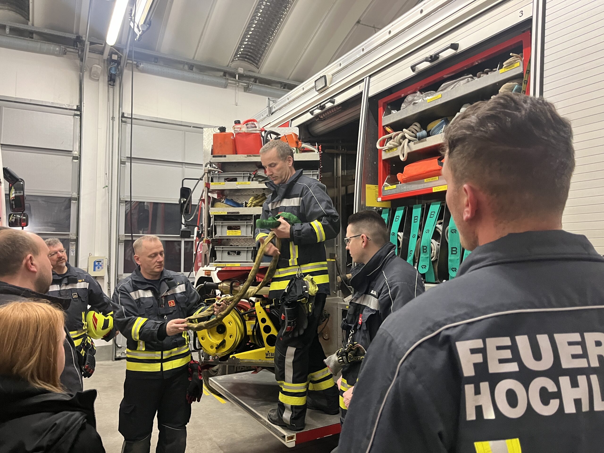 In den letzten beiden Wochen wurde an zwei Tagen die richtige Handhabung von Zug- und Hebemitteln in unserem Feuerwehrhaus geübt.