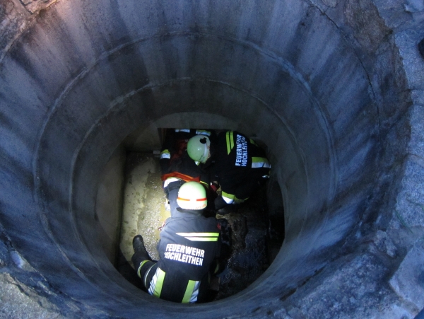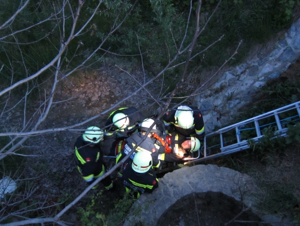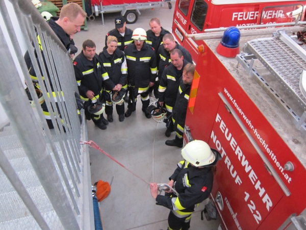 Beim aktuellen Übungsdurchgang wurde das Retten von verletzten Personen aus Höhen und Tiefen mittels Rettungssatz geübt. Weiters wurde das Abseilen von der Rettungsmannschaft mittels Feuerwehrgurt und Notrettungsset praktiziert. © Feuerwehr Hochleithen