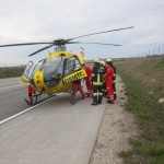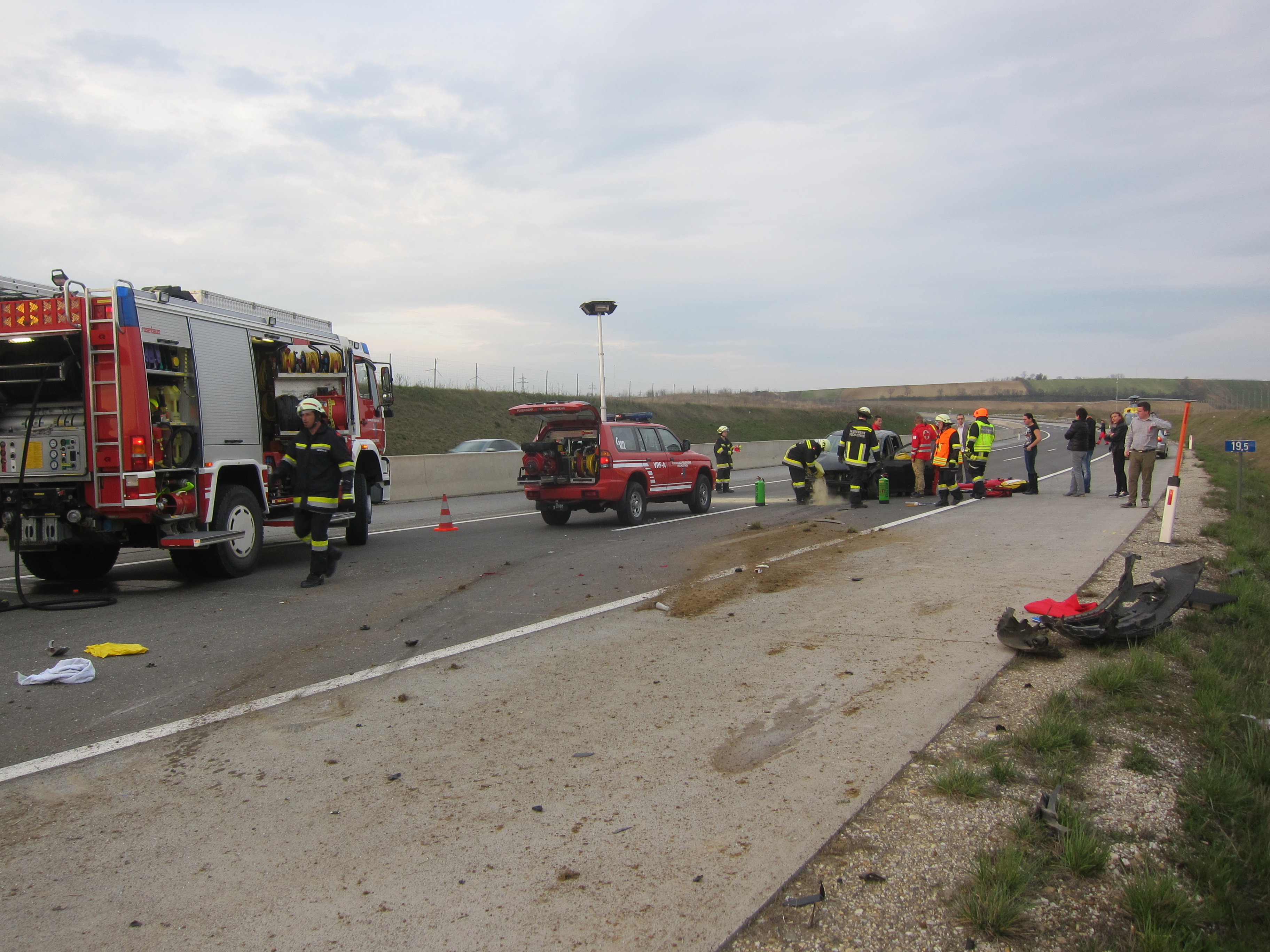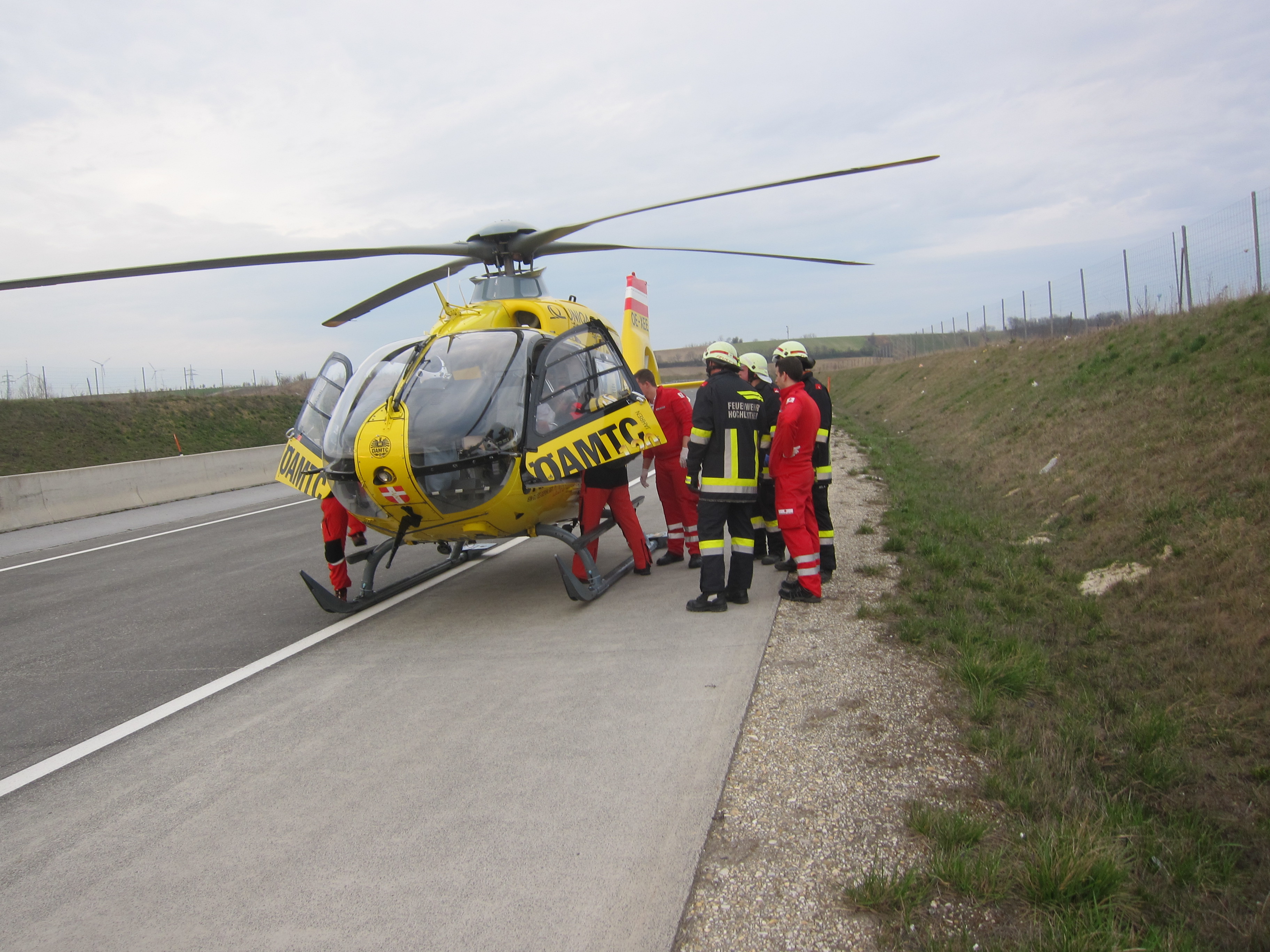 Die Freiwillige Feuerwehr Hochleithen wurde heute zur Menschenrettung auf der A5 Richtung Brünn alarmiert. Ein junger PKW Lenker kam ins Schleudern und kam nach mehreren Überschlägen auf der Fahrbahn zum Stillstand. Er wurde von den Ersthelfern versorgt und wurde anschließend mit dem Notarzthubschrauber in das Klinikum Mistelbach geflogen.