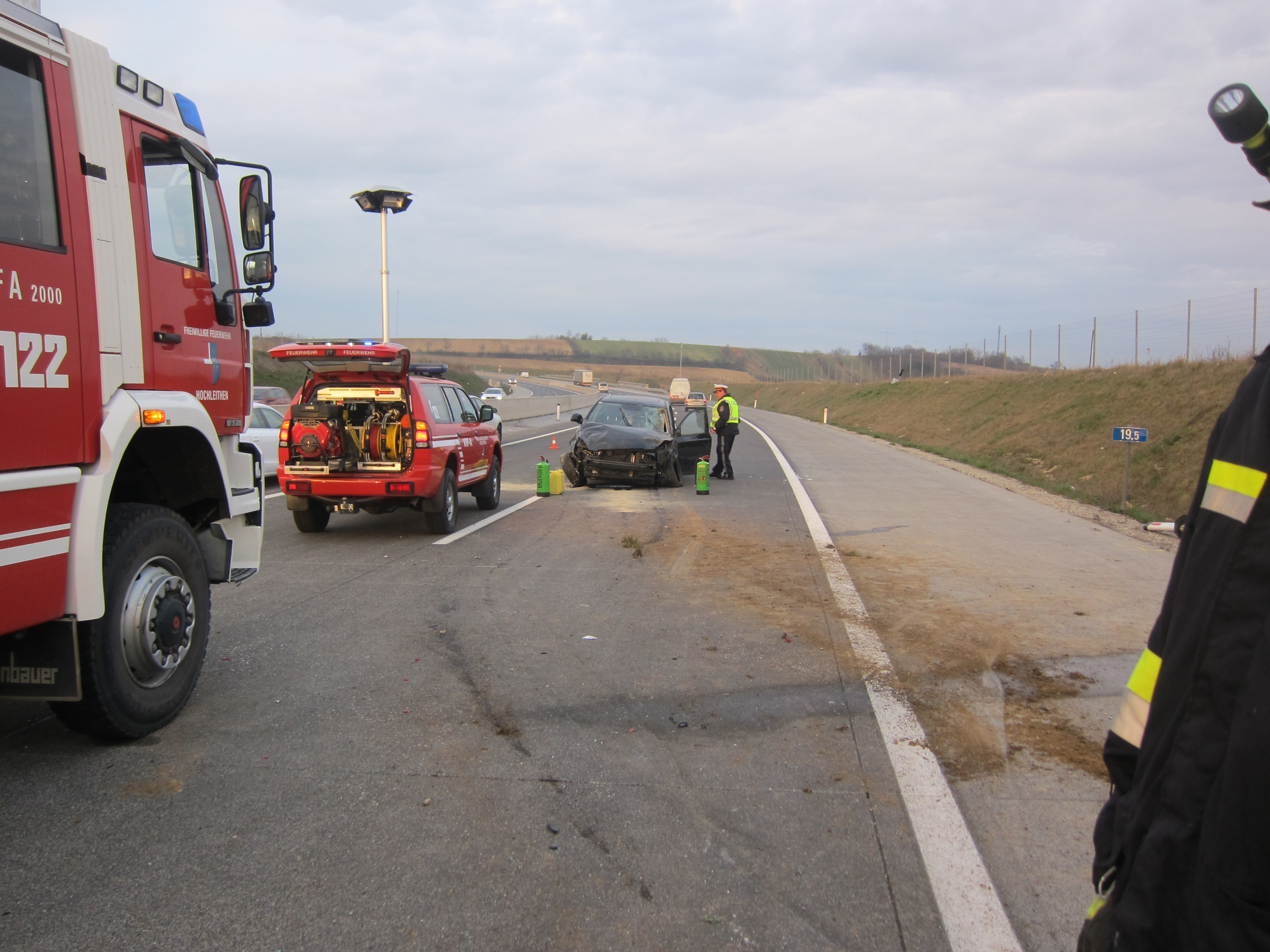 Die Freiwillige Feuerwehr Hochleithen sperrte im Auftrag der Polizei die A5 und führte gemeinsam mit der Fa. Wilding die PKW Bergung durch.