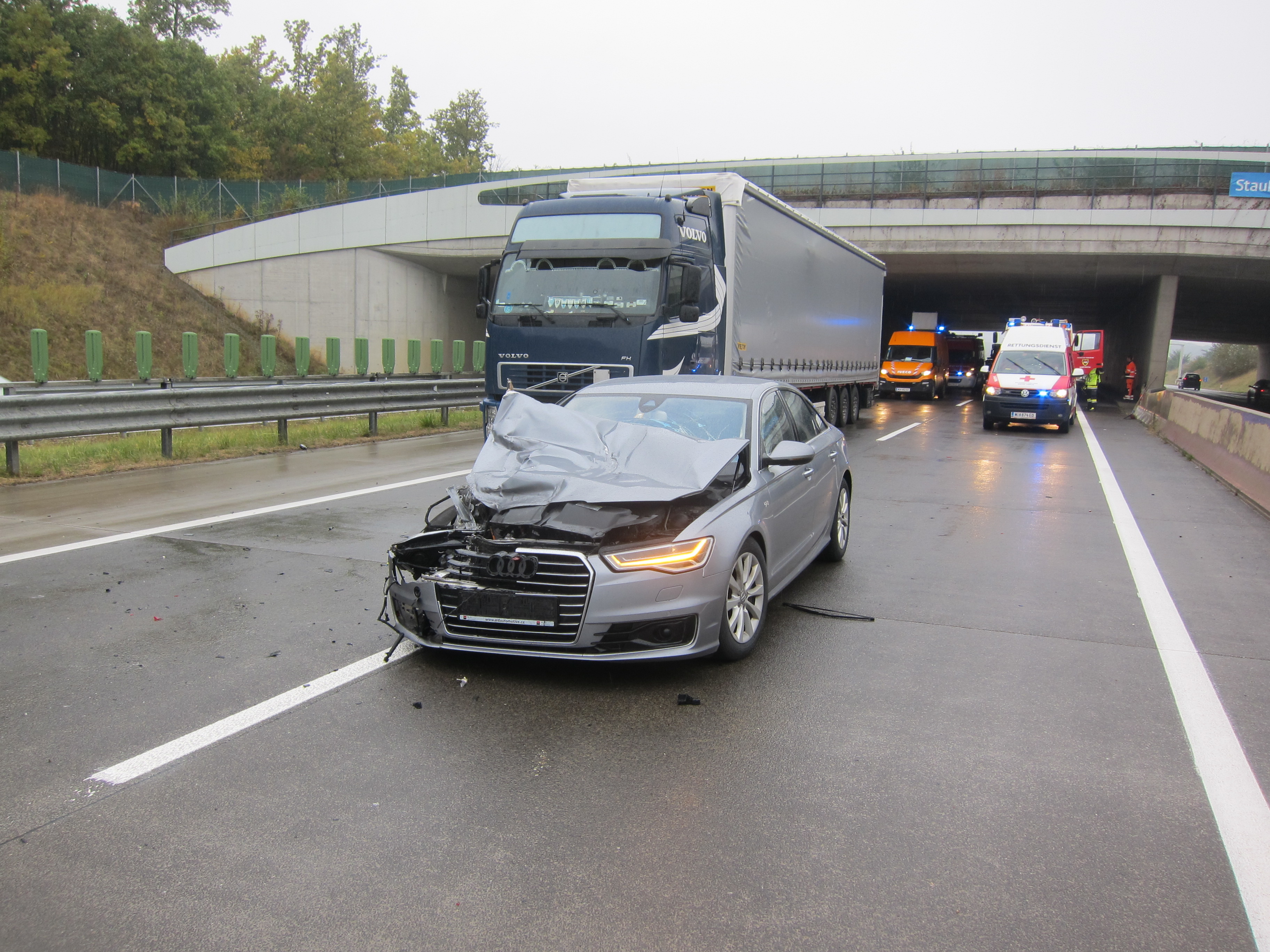 Die Freiwillige Feuerwehr Hochleithen wurde heute zu einem technischen Einsatz auf die A5, in Fahrtrichtung Wien nachalarmiert. Kurz nach der Wildbrücke kollidierten ein LKW und ein PKW. Der Fahrer des PKWs erlitt glücklicherweise keine Verletzungen. Da die Freiwillige Feuerwehr Gaweinstal bereits am Unfallort war, wurde nach dem Eintreffen unserer Wehr der Einsatz gemeinsam abgearbeitet.