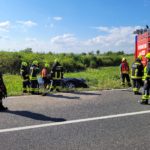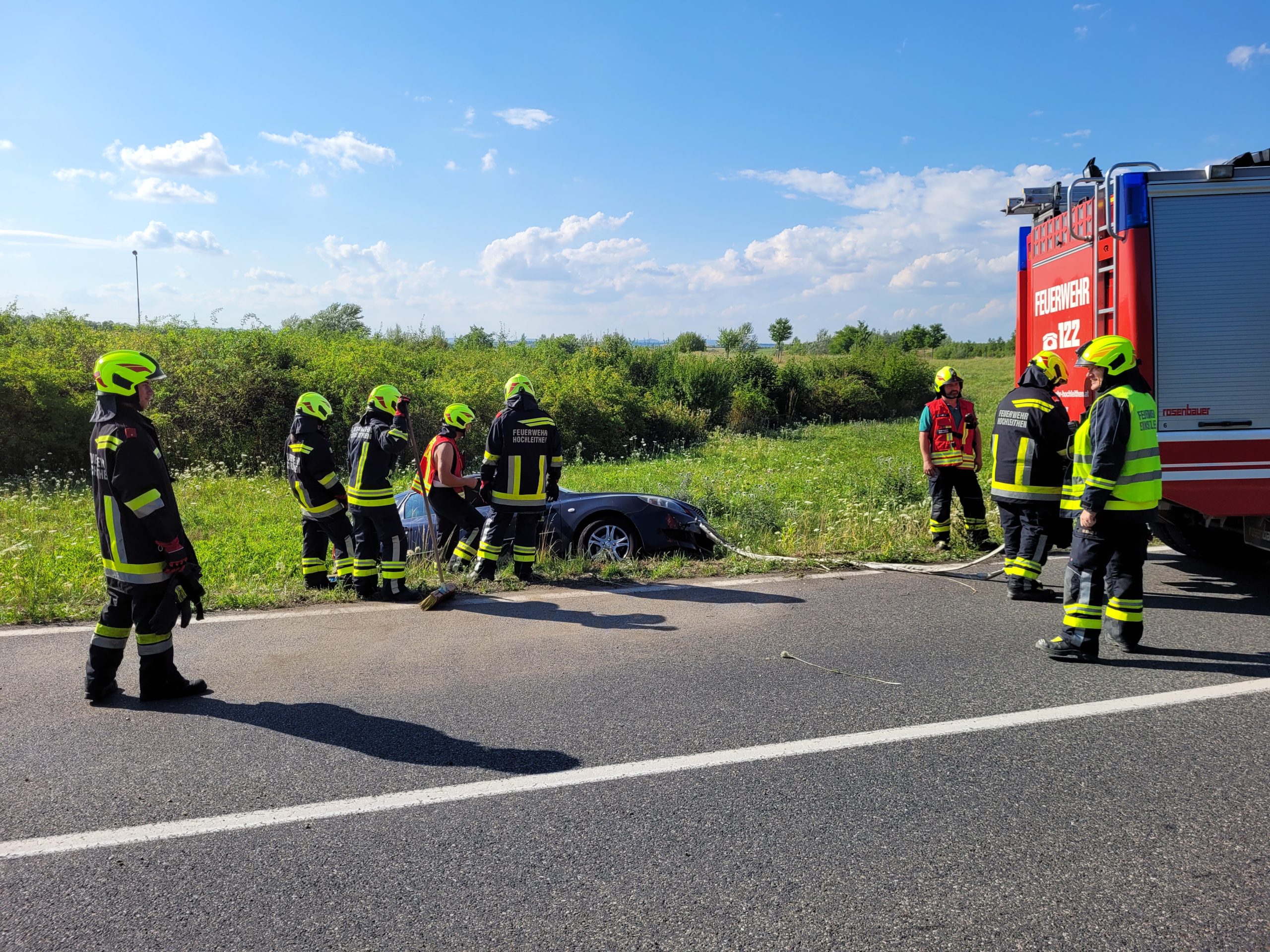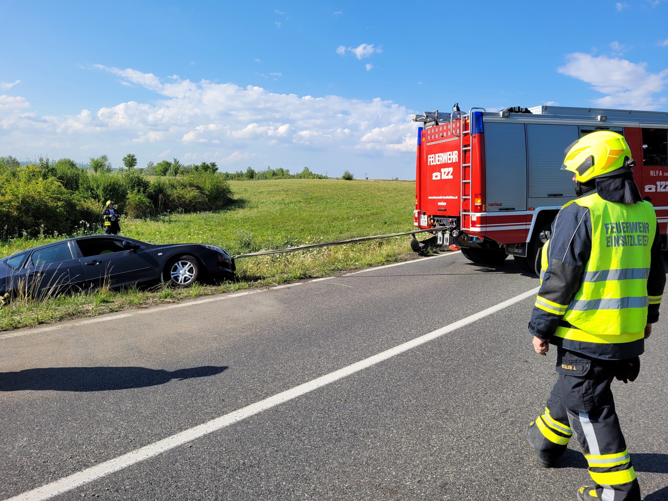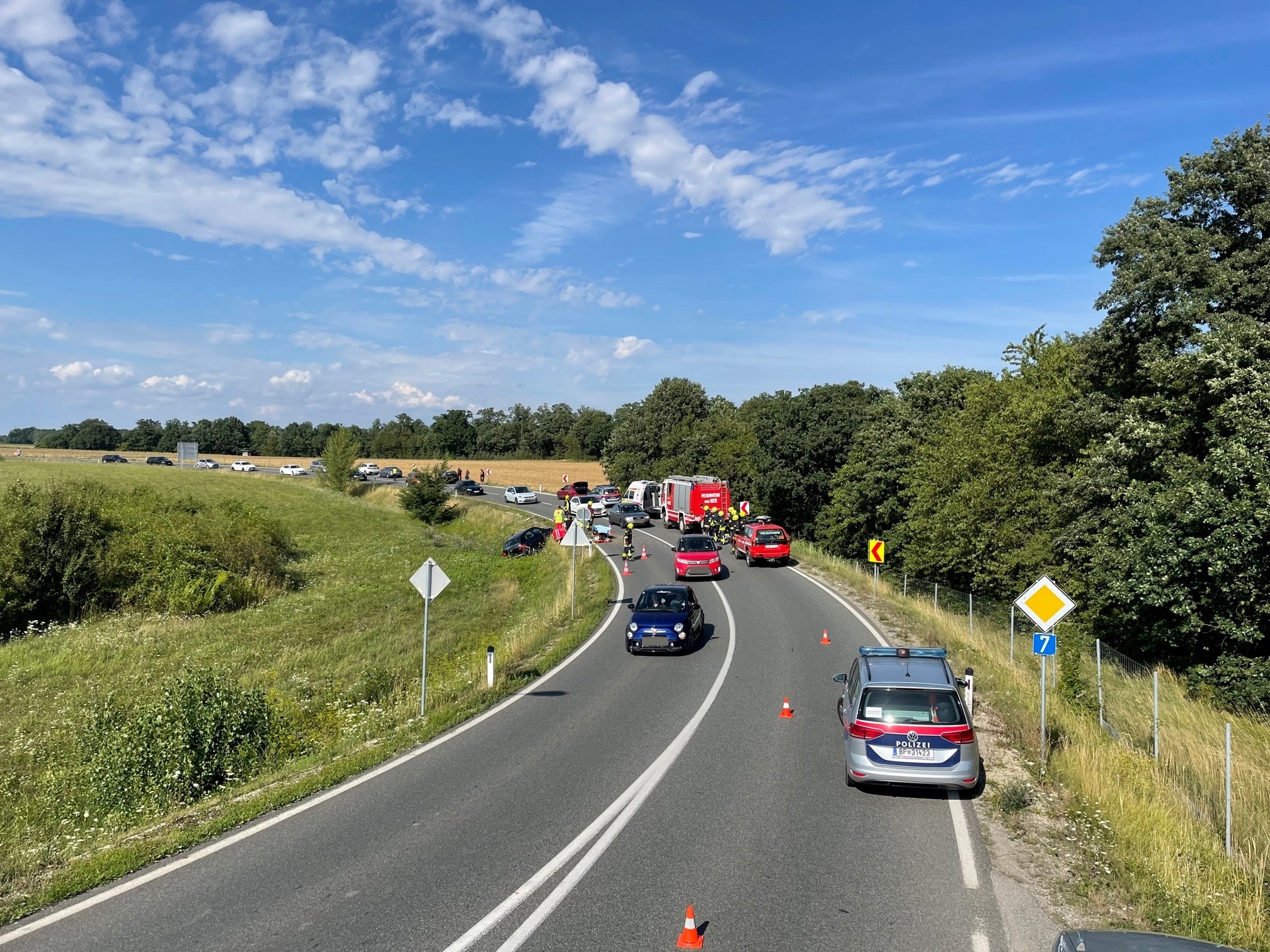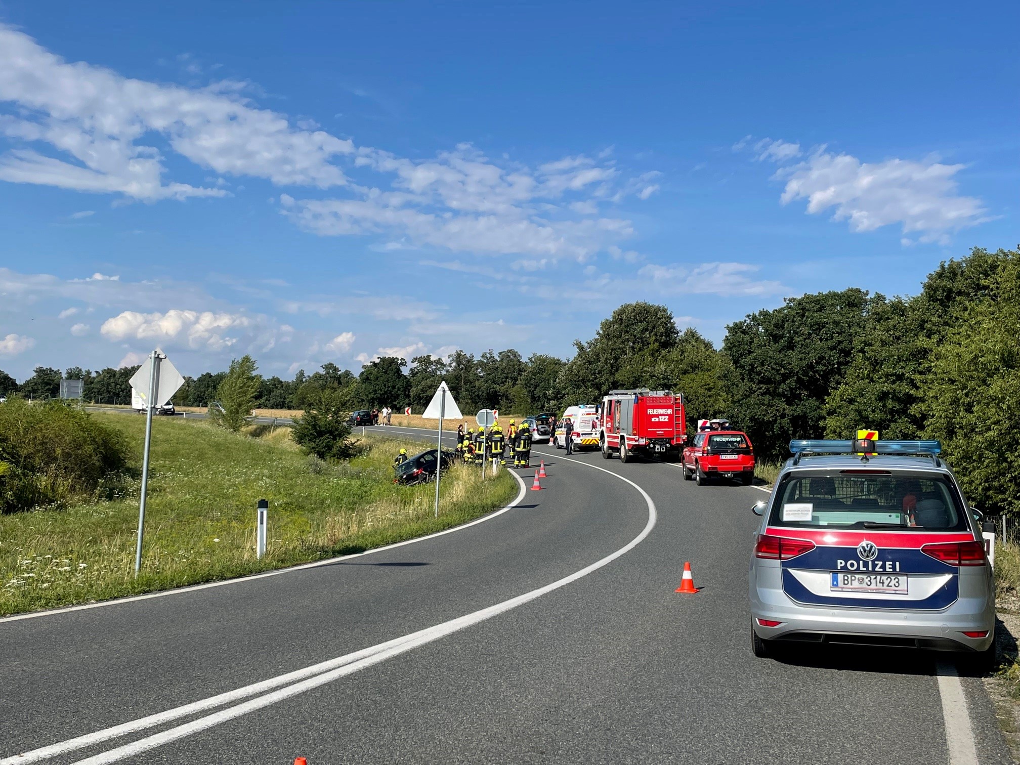Da Rettung und Polizei bei unserem Eintreffen bereits vor Ort waren, unterstützten wir unverzüglich die Blaulichtorganisationen beim Absichern der Unfallstelle und Versorgen eines verletzten Fahrzeuglenkers. Dieser wurde anschließend in das Landeskrankenhaus Mistelbach-Gänserndorf abtransportiert. Ein verunfalltes Fahrzeug wurde vom RLF-A mittels Endlosscheife aus dem Straßengraben geborgen. Auf Anweisung des Fahrzeugbesitzers transportierten wir es mit Abschleppachse und Hilfeleistungsfahrzeug ab, der zweite PKW wurde von einem Pannendienst abgeschleppt.