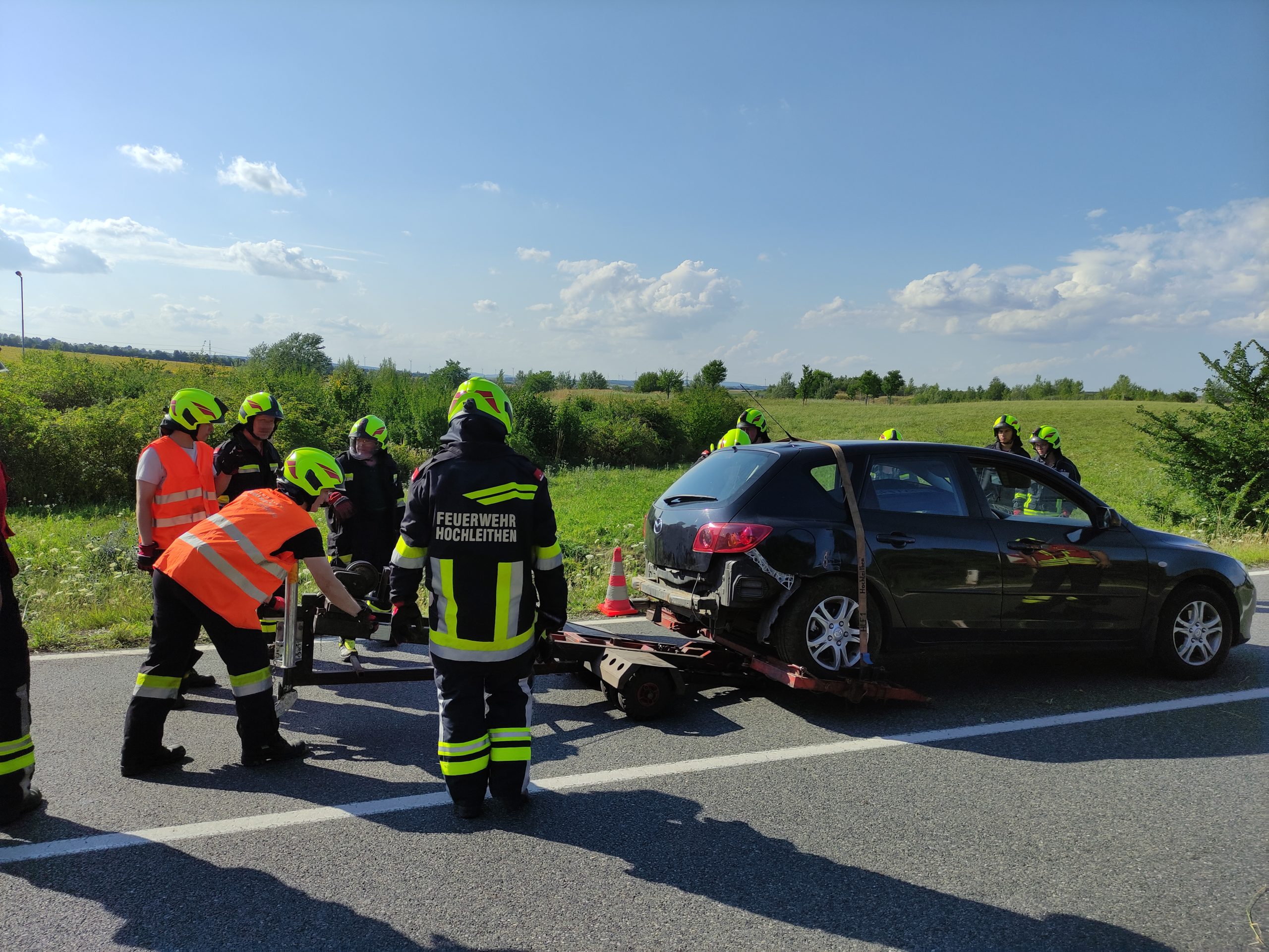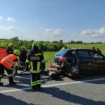 Samstagnachmittags wurden wir via Pager zu einem Verkehrsunfall mit zwei beteiligten Fahrzeugen auf die B7, beim Kreisverkehr in Richtung Kollnbrunn alarmiert. Wir rückten mit Vorausfahrzeug, Rüstlöschfahrzeug, Tanklöschfahrzeug und Hilfeleistungsfahrzeug aus.