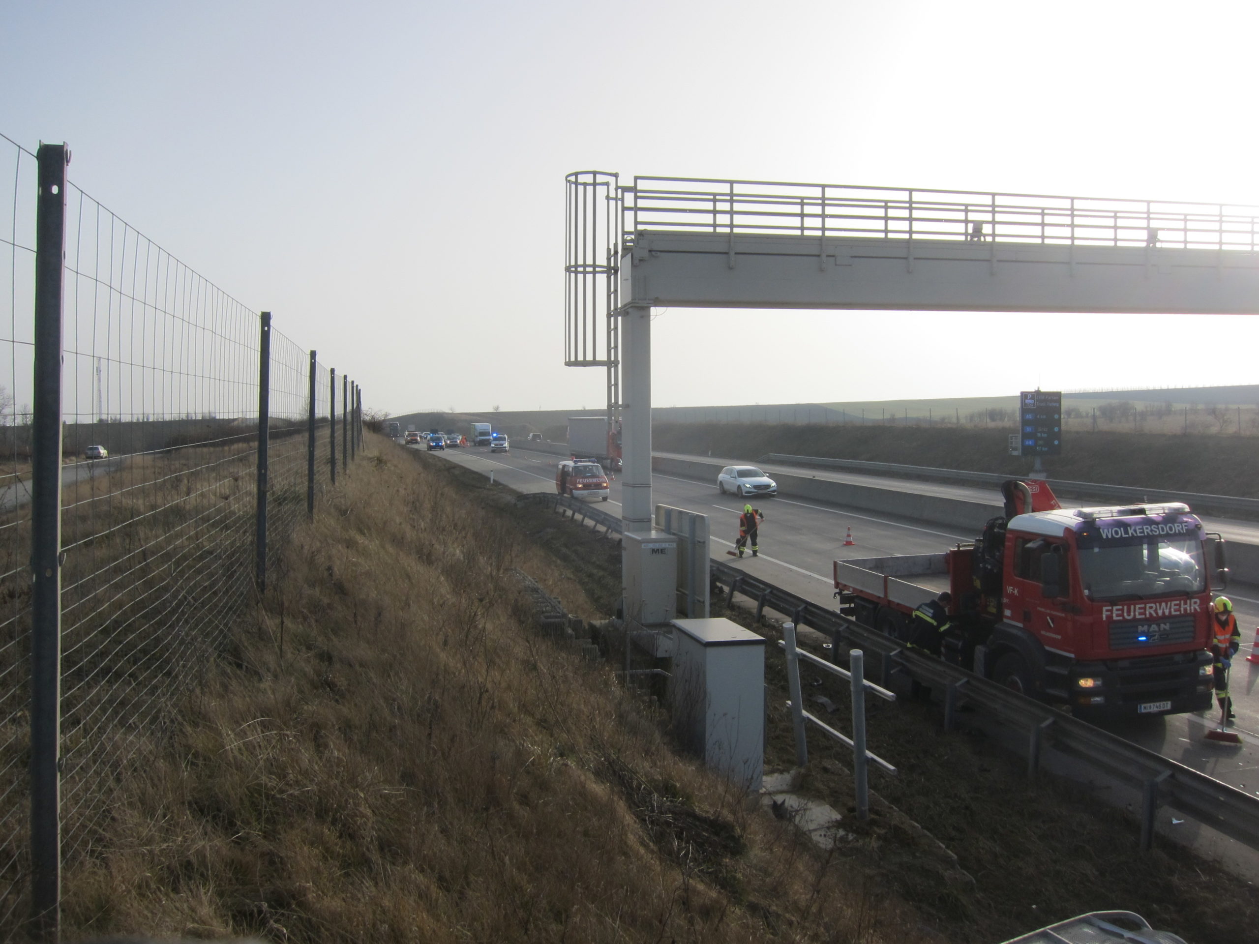 Am Nachmittag des 23. Februars wurden wir gemeinsam mit der FF Wolkersdorf zu einer Fahrzeugbergung auf die Autobahn, Fahrtrichtung Brünn alarmiert. Vorausfahrzeug und Rüstlöschfahrzeug rückten kurz hintereinander in Richtung Einsatzort aus.