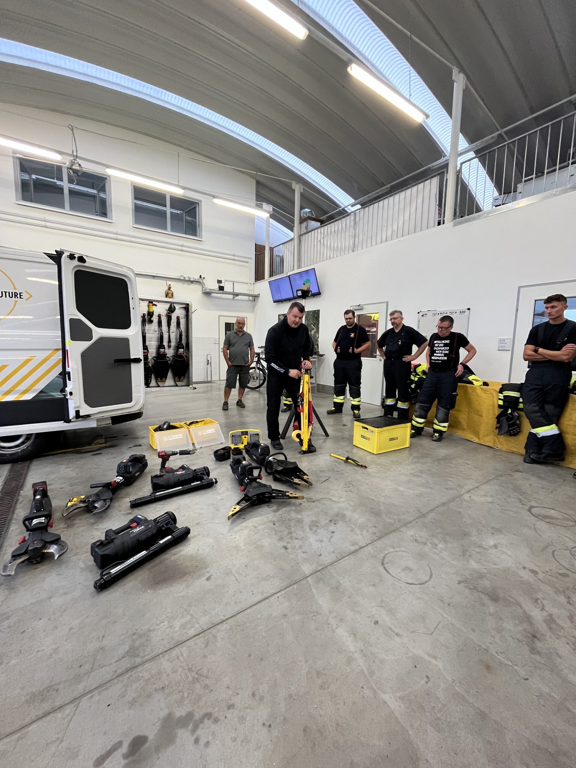 Am Feuerwehrdienstag bekamen wir in unserem Feuerwehrhaus eine Vorführung der neuen akkubetriebenen Smart-Force Rettungsgeräte von WEBER RESCUE SYSTEMS.