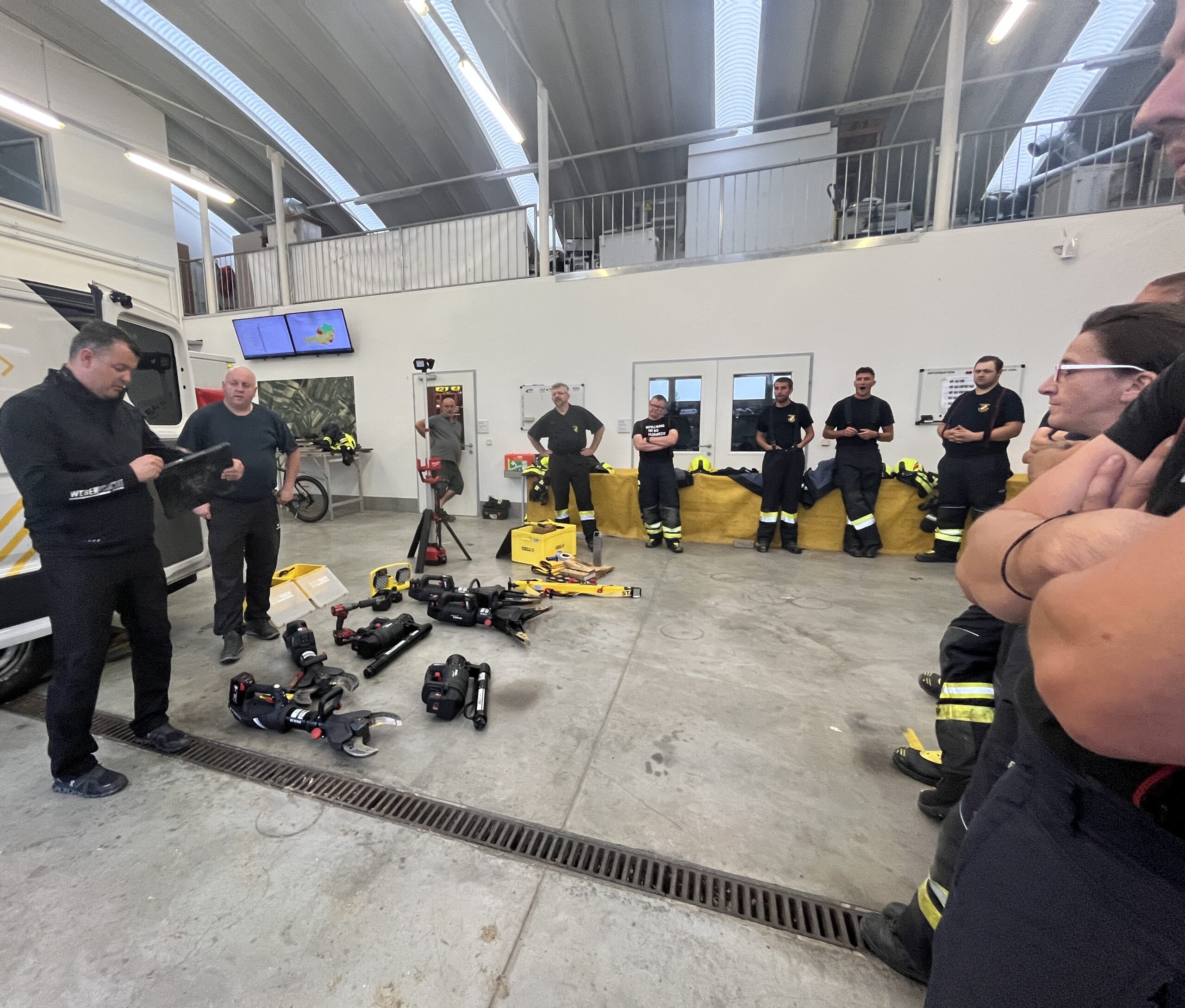 Dabei konnte uns Robert Niederhofer sowohl das Können als auch die technischen Daten der akkubetriebenen hydraulischen Geräte sowie der neu produzierten Hebekissen näherbringen.