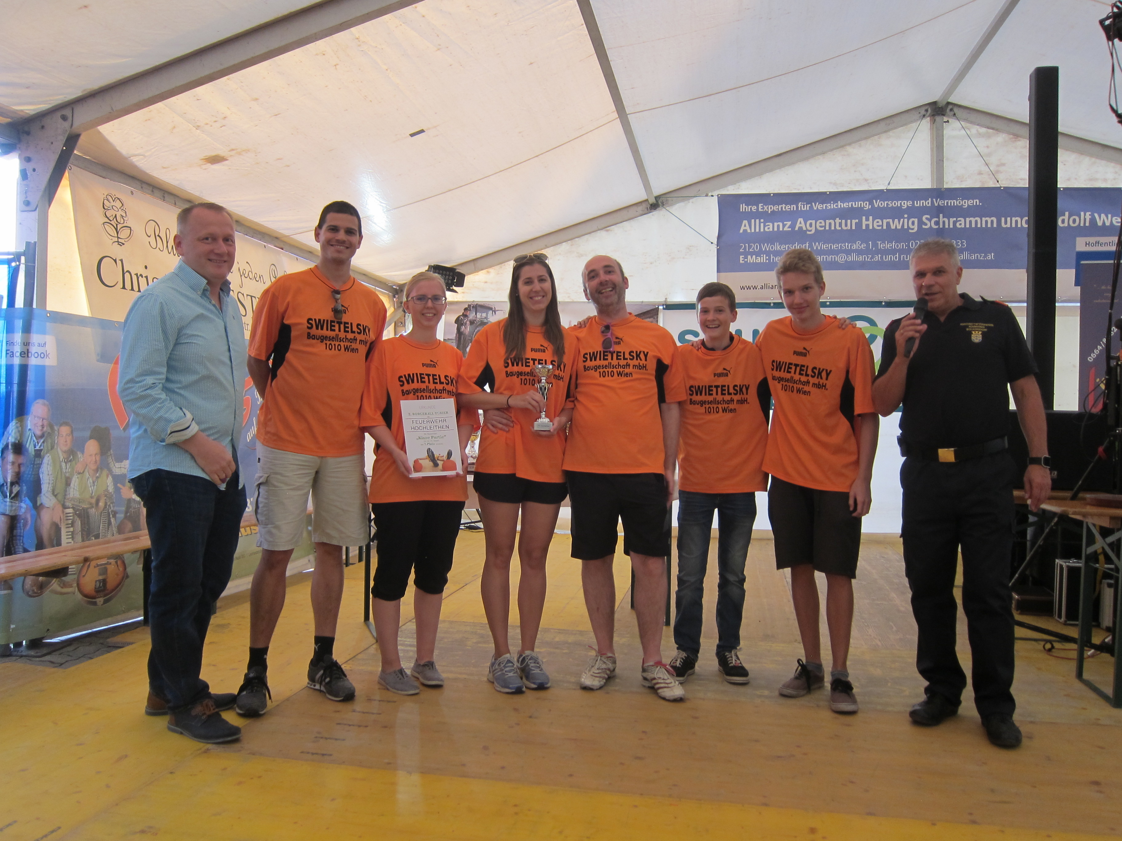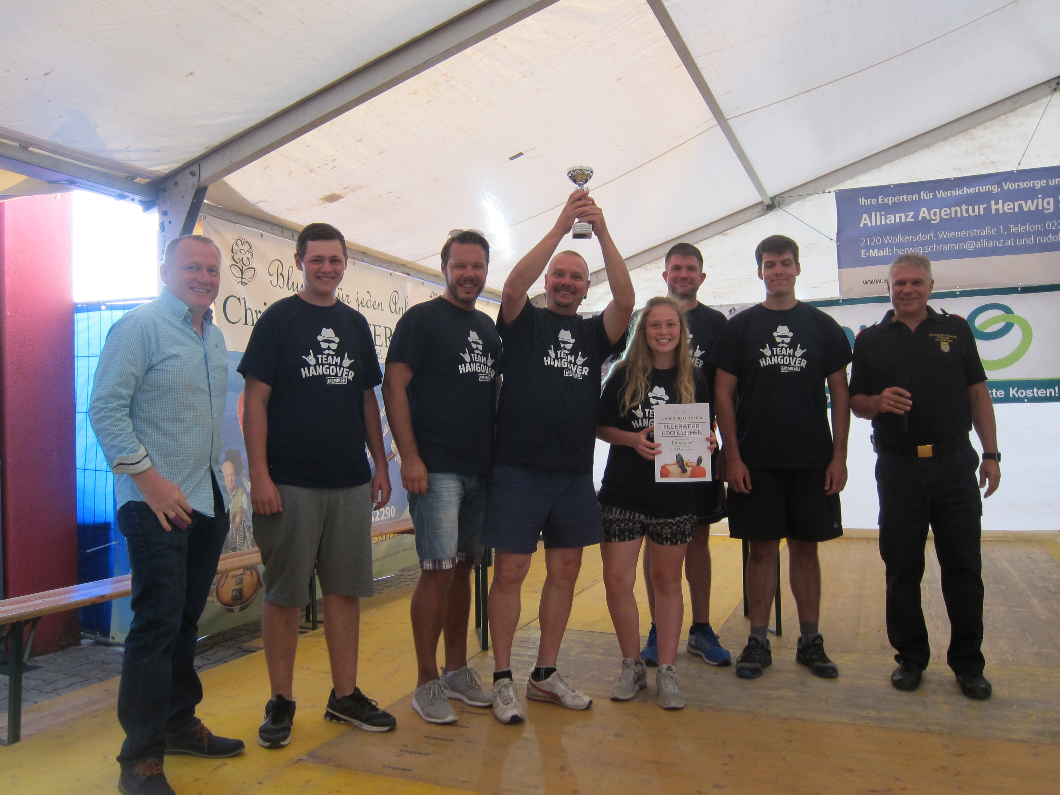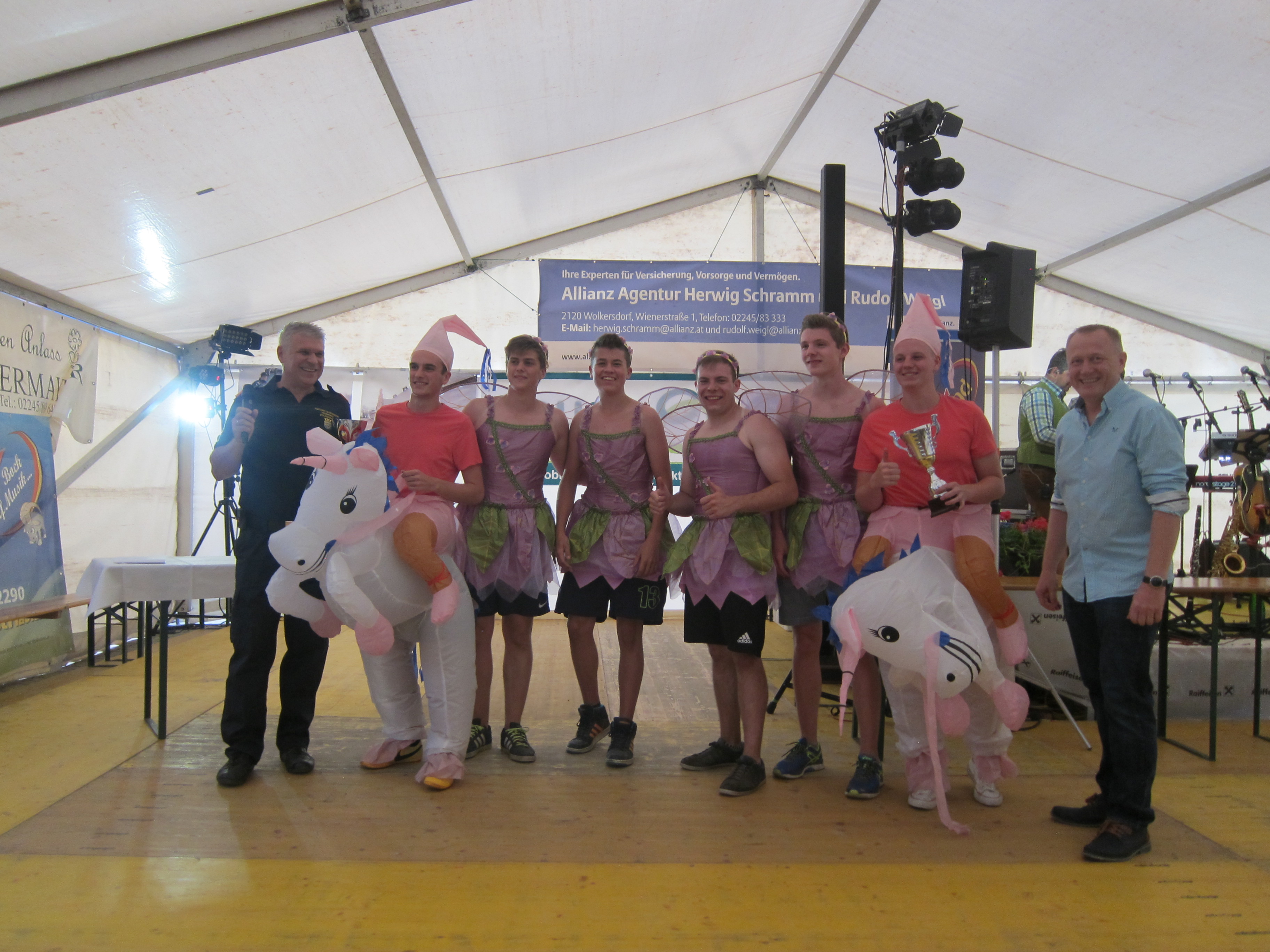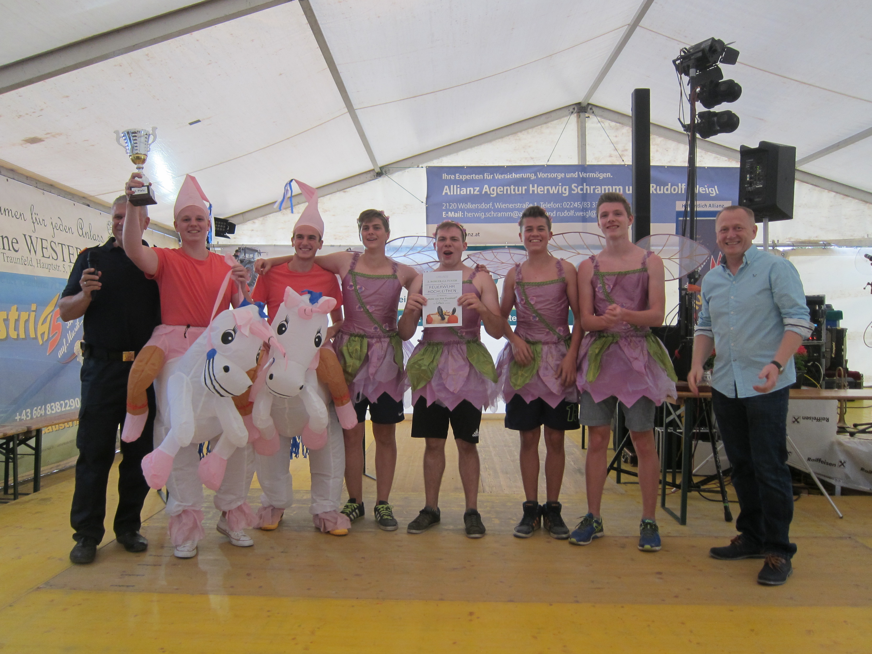 Bei der anschließenden Siegerehrung wurde neben den Pokalen für die teilnehmenden Mannschaften auch ein Sonderpokal für das verrückteste Outfit verliehen. Für diese besondere Auszeichnung ließen die Teams ihrer Kreativität freien Lauf. Der Sieger wurde vom anwesenden Publikum mittels Applaus gekürt. In dieser Wertung sicherte sich die Jugend Hochleithen verdienterweise den Pokal.