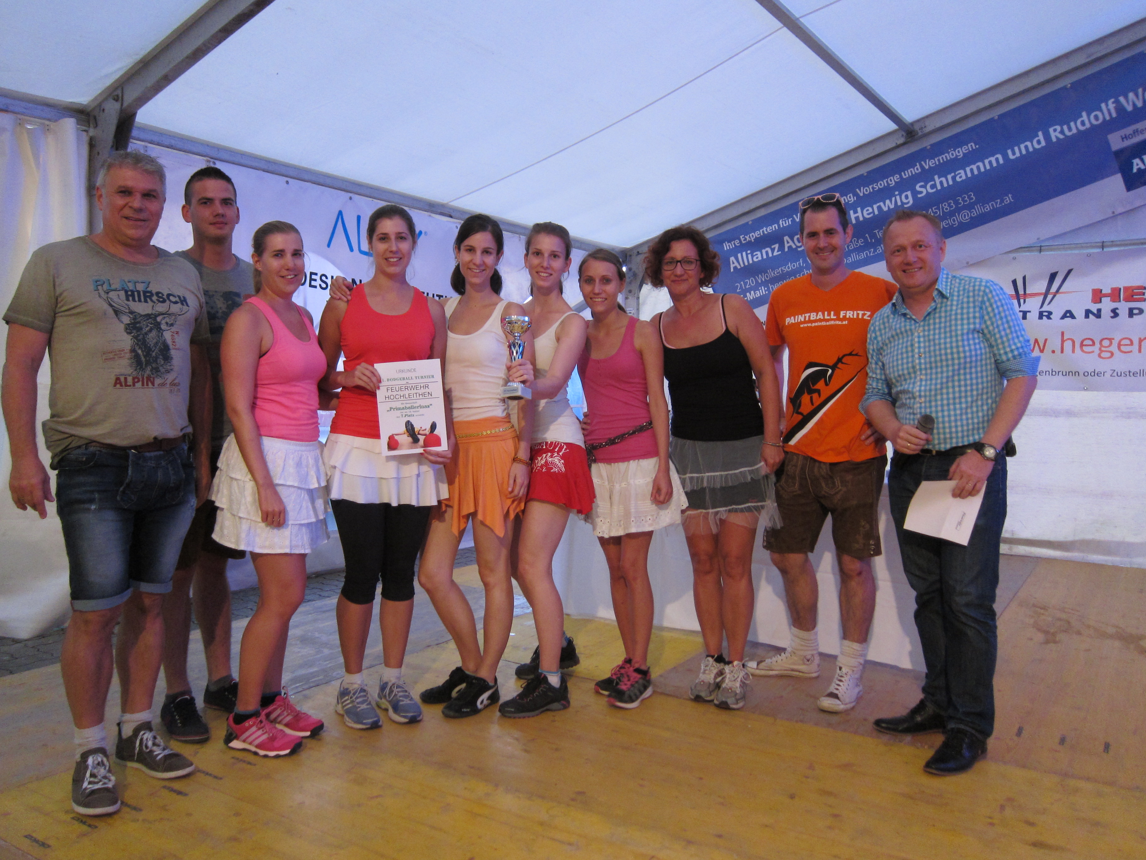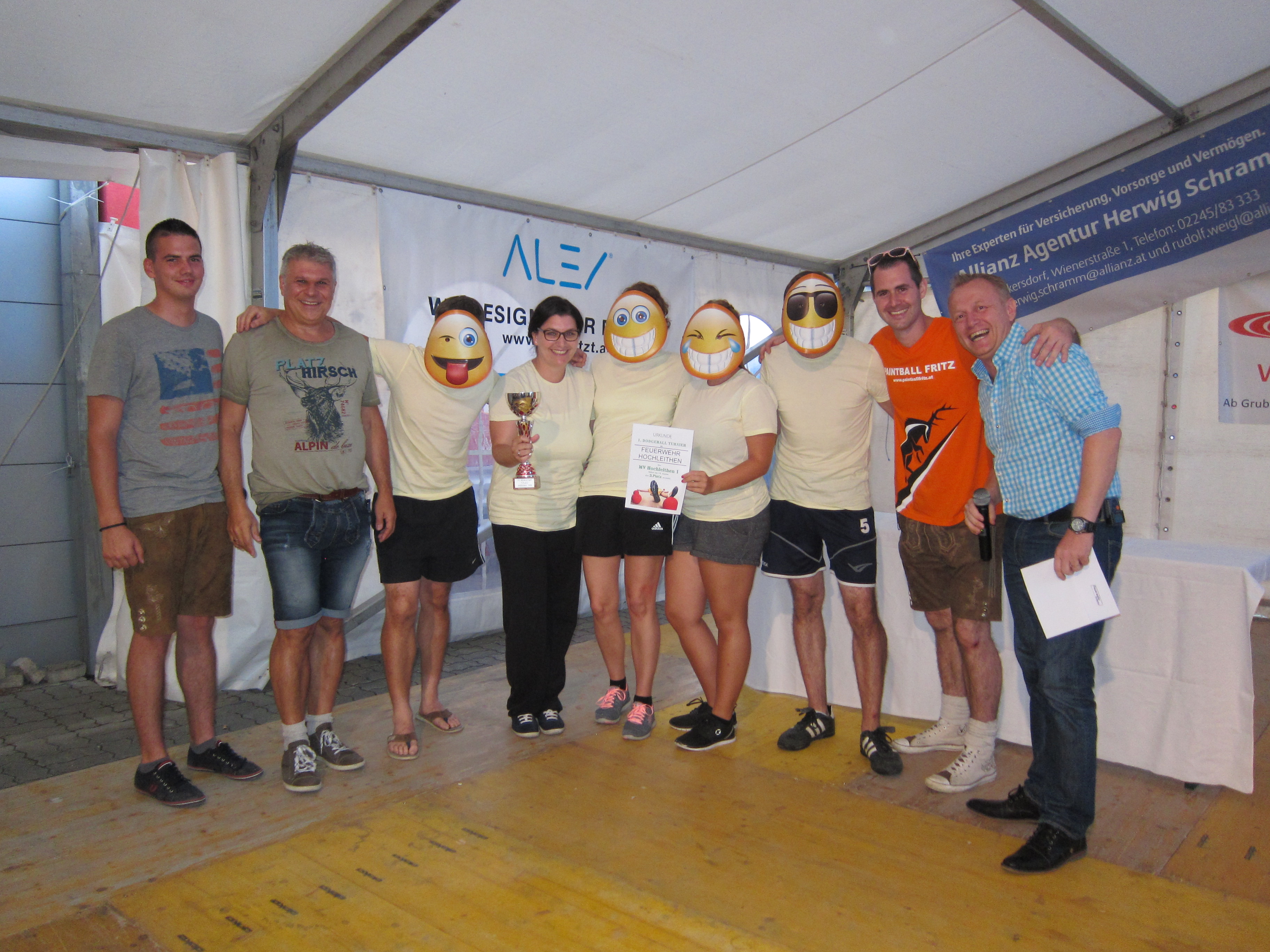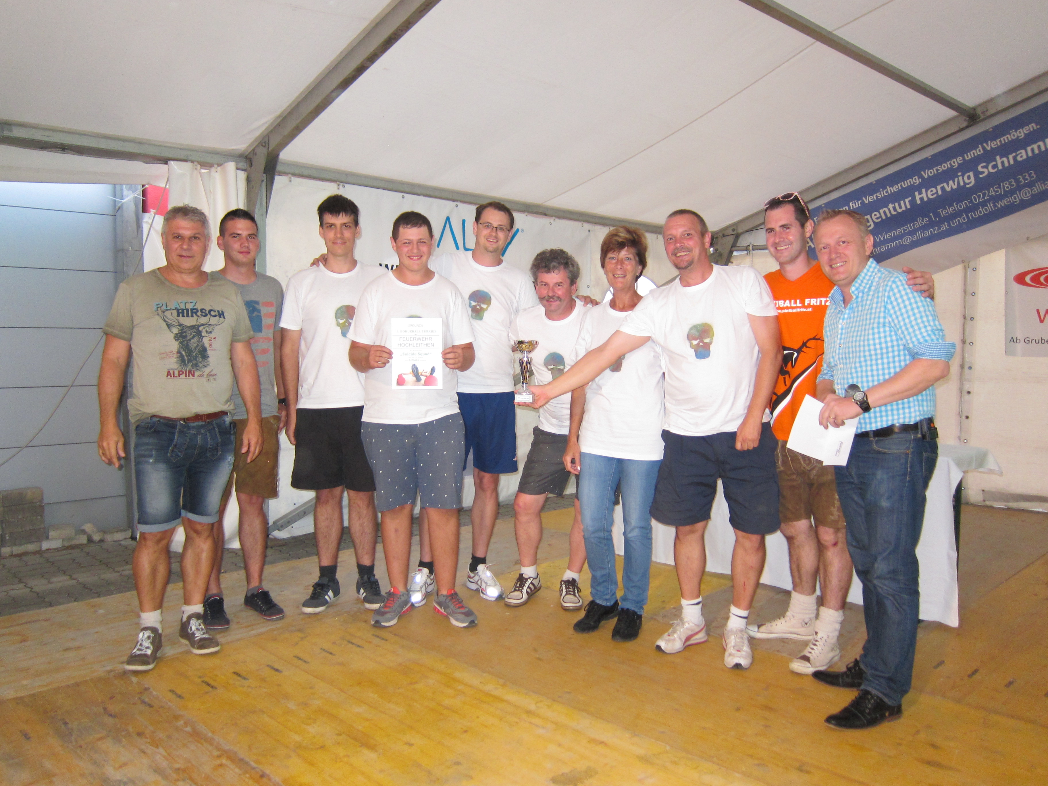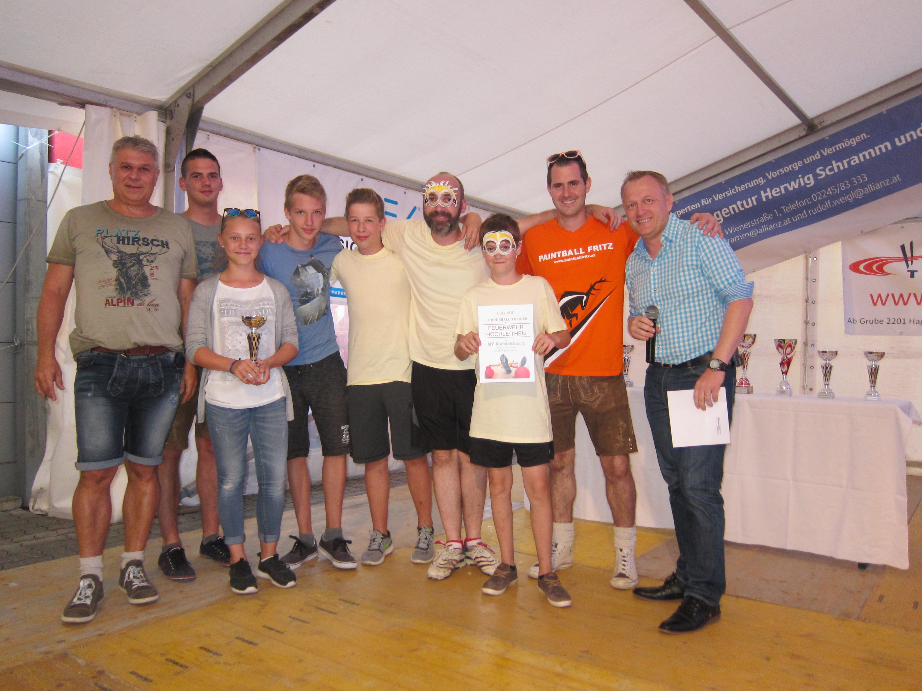 Bei unserem heurigen Zeltfest fand Samstagnachmittag unser 1. Dodgeball-Turnier, organisiert durch unsere Kameraden VM Kristian Pfauser und SB Wolfgang Antl, statt. Acht Gruppen waren am Start und machten dieses Event zu einem vollen Erfolg. Vielen Dank an alle Mannschaften, die mit so viel Elan und Spaß dabei waren. Ergebnisliste: 1. Platz Kellerburschen 2. Platz Jugend Hochleithen 3. Platz MV Hochleithen 1 4. Platz S'glatscht glei 5. Platz Suicide Squad 6. Platz FF Hautzendorf 7. Platz Primaballerinas 8. Platz MV Hochleithen 2 Zum Dodgeball-Turnier gehört nicht nur Spaß und sportlicher Ehrgeiz dazu, auch wurde das verrückteste Outfit vom anwesenden Publikum bewertet. Gewonnen hat hier das Team S'glatscht glei. Alle Fotos vom Dodgeball-Turnier sind auf www.facebook.com/feuerwehr.hochleithen zu finden. Am Abend spielten dann die Mostlandstürmer auf, die das Zelt wieder zum Beben brachten. Ein Dank an alle für die tatkräftige Unterstützung. © Feuerwehr Hochleithen