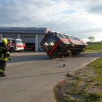 Die Aufgabe bestand darin, einen auf der Seite liegenden Bus, mit Hilfe der Seilwinde des RLFs und des TLFs kontrolliert und vorsichtig wieder aufzustellen. Für eine erfolgreiche Bergung musste dabei besonders das Gewicht des Buses sowie die möglichen Anschlagpunkte auf ihre Stabilität eingeschätzt werden. Welche Kräfte sich bei diesem Vorhaben entwickeln können, konnte bereits der erste Zug am Vortag hautnah beobachten. Zusätzliches Hauptaugenmerk wurde dabei auf die unterschiedlichsten Bergemittel gelegt.
