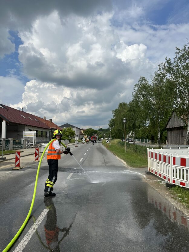 Tierkadaverrückstände auf Straße Allgemein, Einsätze, Einsätze 2023, MTFA, RLFA, TLF 1Von Benjamin Haertl7. Juni 2023Am Mittwochnachmittag wurden wir per Eigenalarmierung in das Feuerwehrhaus gerufen.