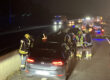 Auf der Überholspur kam ein PKW nach dem Unfall quer zur Fahrtrichtung zum Stillstand. Am Einsatzort angekommen, sicherten wir zuerst die Unfallstelle weiträumig ab, um die nachfolgenden Verkehrsteilnehmer auf der nassen Fahrbahn frühzeitig auf den blockierten Fahrstreifen aufmerksam zu machen. Da die Insassen der verunfallten Fahrzeuge zum Glück unverletzt blieben, konnten wir unmittelbar danach mit den Aufräumarbeiten beginnen. Dazu entfernten wir lose Fahrzeugteile und Splitter von der Fahrbahn, während die Kameraden der inzwischen eingetroffenen FF Wolkersdorf einen PKW auf Anweisung der Autobahnpolizei auf dem Gelände der Bonaventura abstellten. Das zweite am Unfall beteiligte Auto konnte die Fahrt selbstständig fortsetzen.